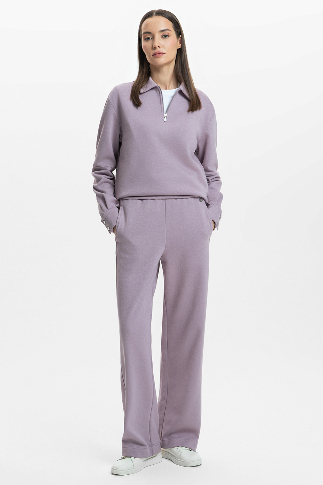Спортивные брюки KANZLER станут отличным выбором для активных женщин, ценящих комфорт и стиль в любой обстановке. Пудрово-сиреневый оттенок придаёт модели изысканность, а смесовый материал (65,6% хлопок, 26,5% вискоза, 7,9% полиэстер) обеспечивает непревзойдённый комфорт и долговечность. Мягкая и приятная на ощупь ткань позволяет коже дышать, создавая оптимальный микроклимат даже при интенсивных тренировках. Прямой крой подходит для любого типа фигуры, подчёркивая женственность и элегантность, а лампасы визуально вытягивают силуэт. Джоггеры можно дополнить толстовкой с воротником поло из такого же материала. Параметры модели: рост 177, 85-61-92 Размер на модели: S