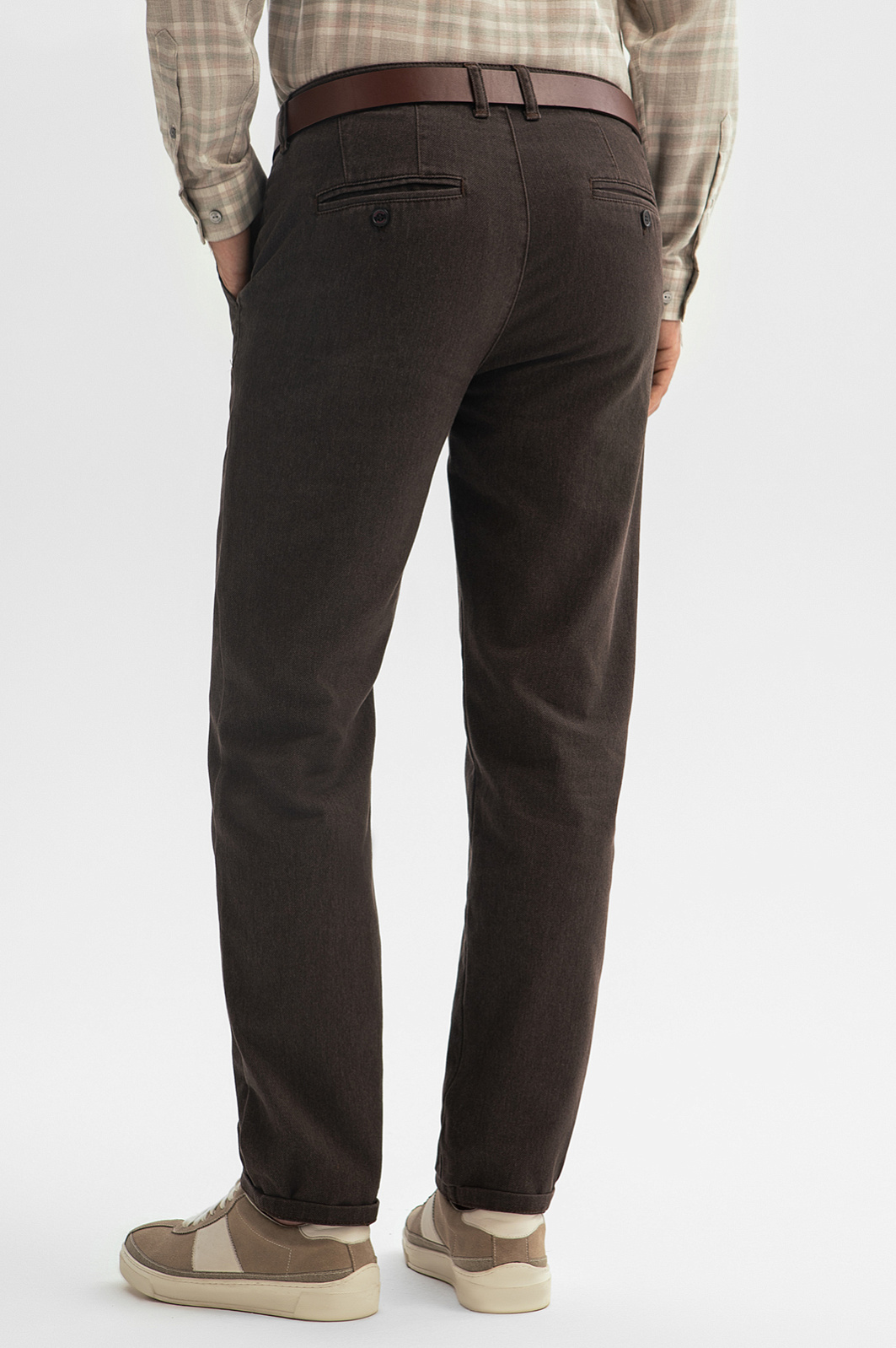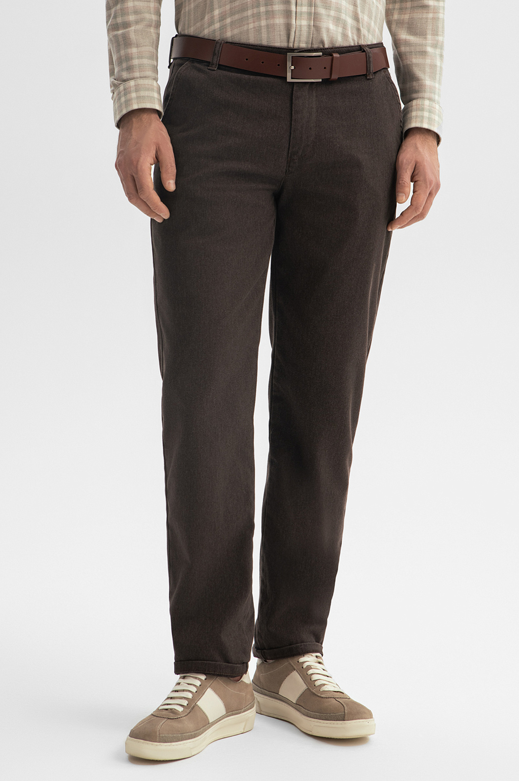 Брюки KANZLER из мягкого хлопкового денима естественного темно-коричневого оттенка с карманами — удобные повседневные брюки, в которых приятно проводить свободное время в городе. Если надеть с ними фланелевую рубашку, джемпер или водолазку, получится уютный повседневный аутфит в стиле кежуал. Модель со свободными слегка зауженными штанинами с небольшим отворотом будут комплементарно смотреться на фигуре любого типа. Плотная хлопковая ткань саржевого плетения усилена полиэстером и лайкрой. Она хорошо пропускает воздух, сохраняет естественное тепло тела, устойчива к износу и не растягивается. Параметры модели: рост 189, 102-80-99 Размер на модели: 50