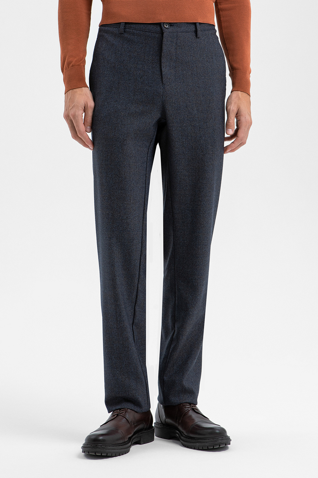 Роскошные шерстяные брюки KANZLER глубокого тёмно-синего цвета из лимитированной коллекции — достойная инвестиция в деловой гардероб. Силуэт задан строгими прямыми линиями, что позволяет сочетать брюки как с деловыми пиджаками, так и с мягким уютным трикотажем. Благородная шерсть по праву считается одним из самых функциональных материалов для элегантной классической одежды. Упругие натуральные волокна обладают способностью противостоять сминанию и поддерживают оптимальный температурный баланс: зимой сохраняют тепло, а в тёплое время года — ощущение прохлады, благодаря чему брюки можно носить в любой сезон. Параметры модели: рост 188, 97-82-92 Размер на модели: 50