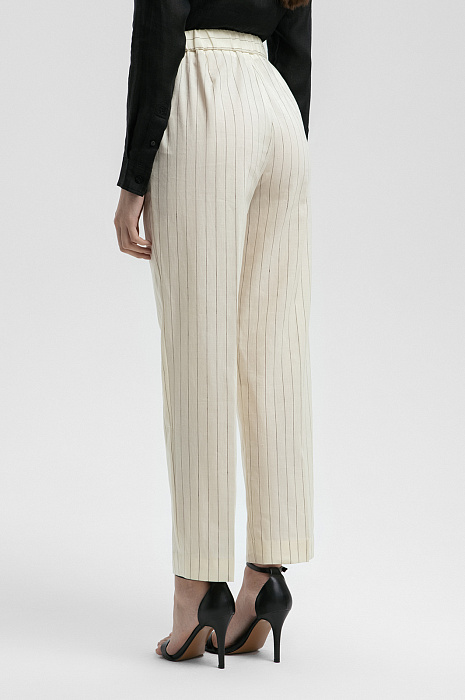 Брюки из шерсти, льна и шелка, цвет молочный, цена 16 990 руб. - купить в интернет-магазине KANZLER