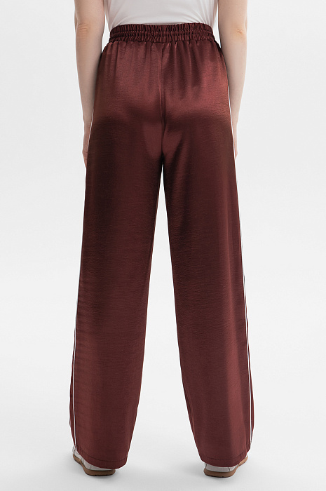 Брюки спортивные атласные с лампасами, цвет коричневый, цена 6 990 руб. - купить в интернет-магазине KANZLER