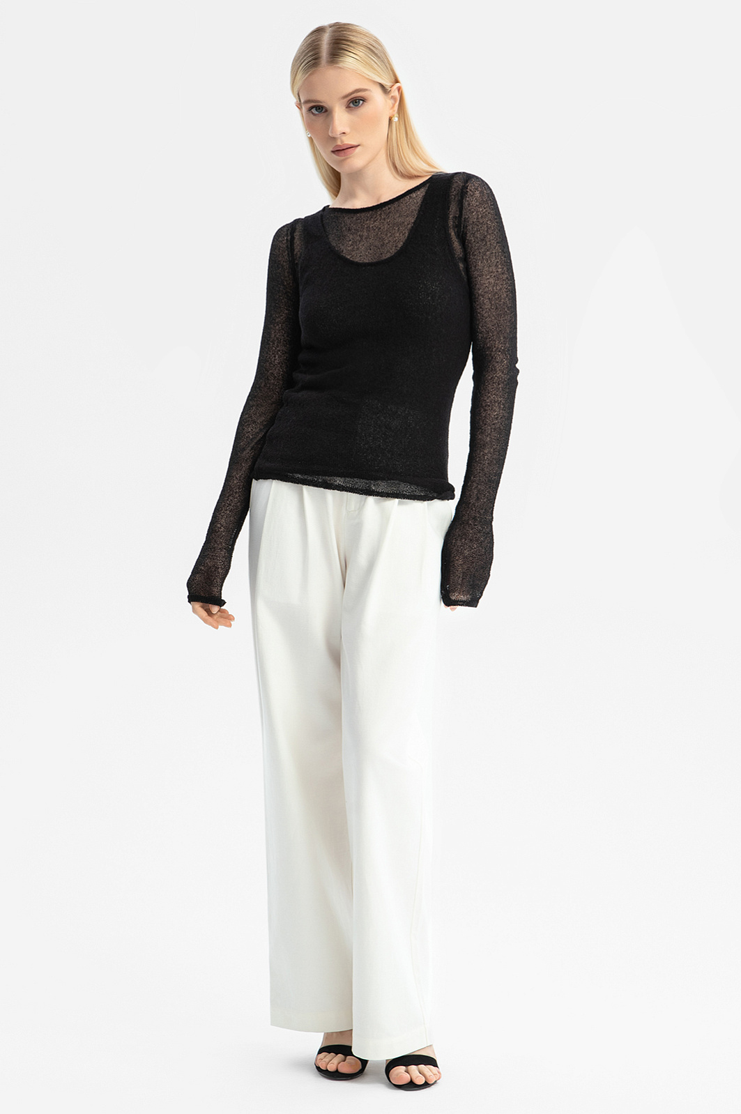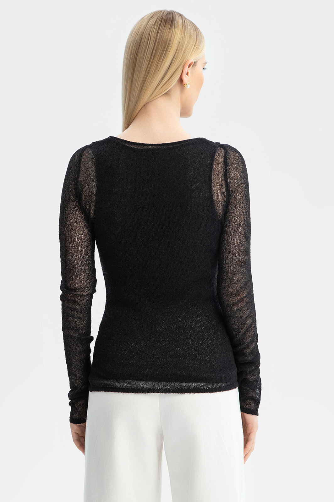 Черный джемпер KANZLER — стильная женственная модель, состоящая из полупрозрачного лонгслива и плотного топа. Облегающий трикотаж окутывает тело дымкой, подчеркивая изящество фигуры и грациозность свободных, ничем не скованных движений. Удлиненные рукава можно собирать на запястьях или расправлять на полную длину, до кончиков пальцев. Мягкий смесовой трикотаж из хлопка и нейлона обладает достоинствами натуральных и современных технологичных волокон. Гипоаллергенный хлопок обеспечивает оптимальную температуру для тела. Нейлон придает трикотажу прочность и эластичность. Ткань отлично дышит и со временем не теряет форму. Параметры модели: рост 175, 88-65-92 Размер на модели: S
