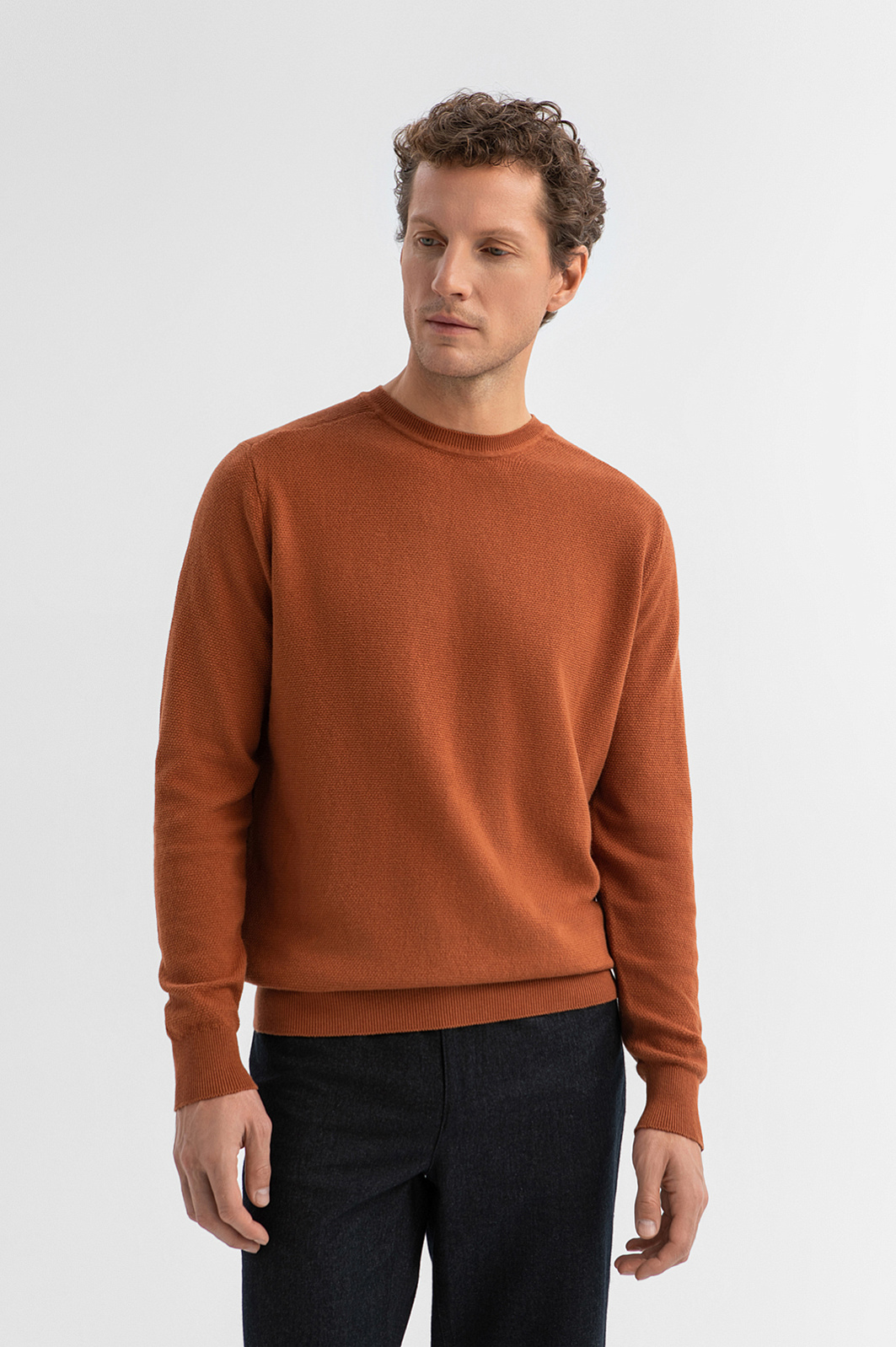 Джемпер KANZLER охристо-коричневого оттенка из хлопка с кашемиром — тёплая и сдержанно выразительная вещь в повседневном гардеробе. Глубокий природный оттенок гармонично сочетается с джинсами и неформальными брюками. Широкие трикотажные резинки на манжетах и по низу аккуратно фиксируют края. Слегка фактурный трикотаж из легкого гипоаллергенного хлопка (95%) с добавлением мягкого нежного кашемира (5%) дарит комфорт, поддерживает циркуляцию воздуха и сохраняет естественное тепло тела. Параметры модели: рост 188, 97-82-92 Размер на модели: M