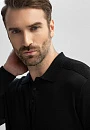 Черное поло из хлопка, шелка и льна с отделкой из алькантары в Новосибирске