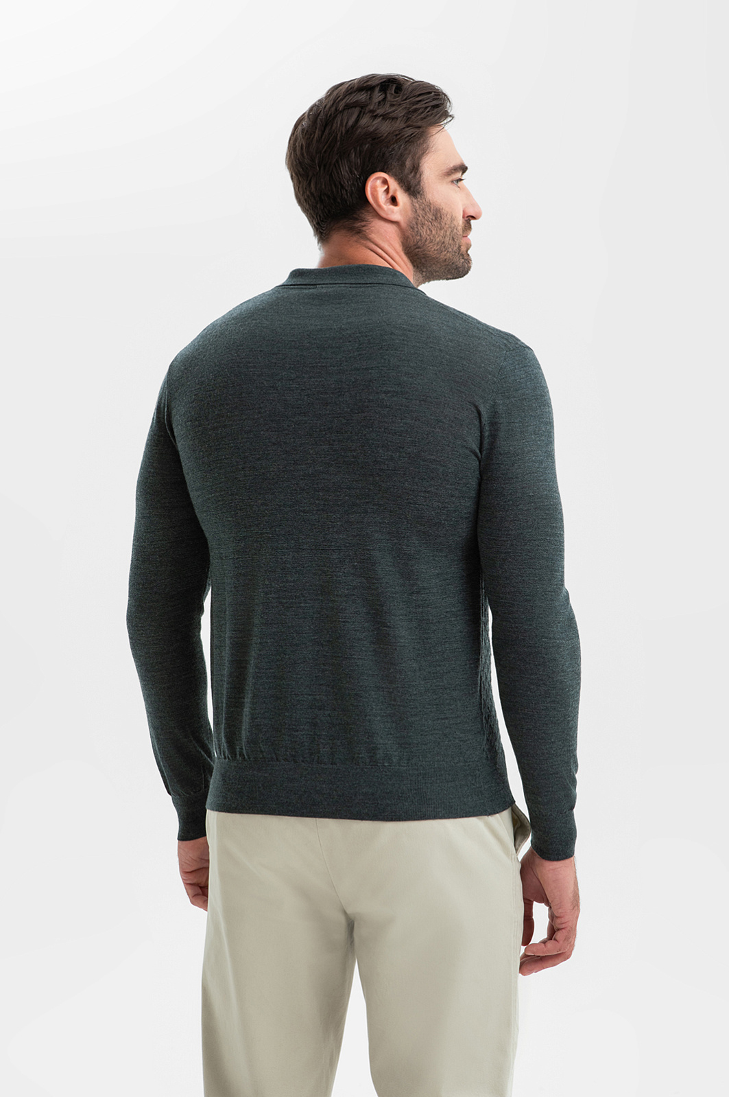 Джемпер поло KANZLER – воплощение мужской элегантности для тех, кто ценит детали. Фактурный узор подчеркивает красоту серо-зеленого оттенка и придает образу глубину. Материал – 100-процентная шерсть, мягкая и невесомая, обеспечивает идеальную терморегуляцию, не перегревая кожу. Эластичные волокна сохраняют форму после многократных стирок, что делает модель инвестицией в гардероб. Это выбор для кежуал-образов и неформального офисного дресс-кода в межсезонье и зимой. Параметры модели: рост 192, 108-83-102 Размер на модели: M