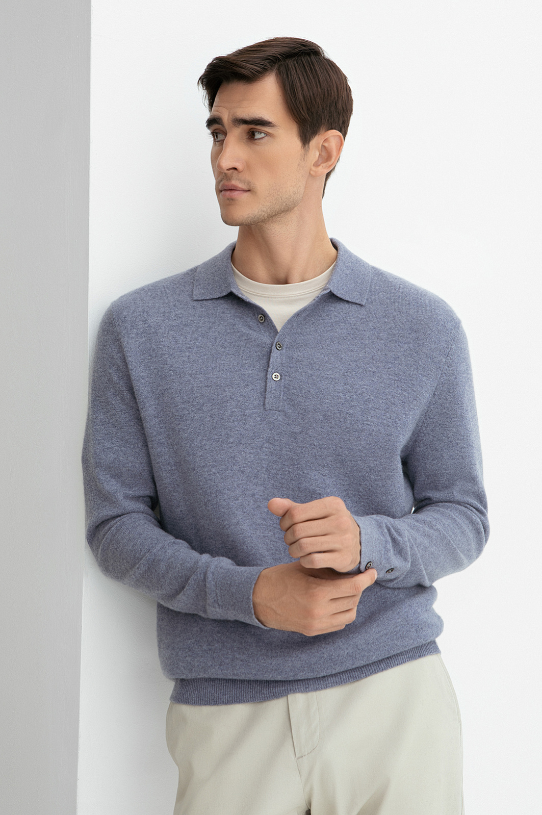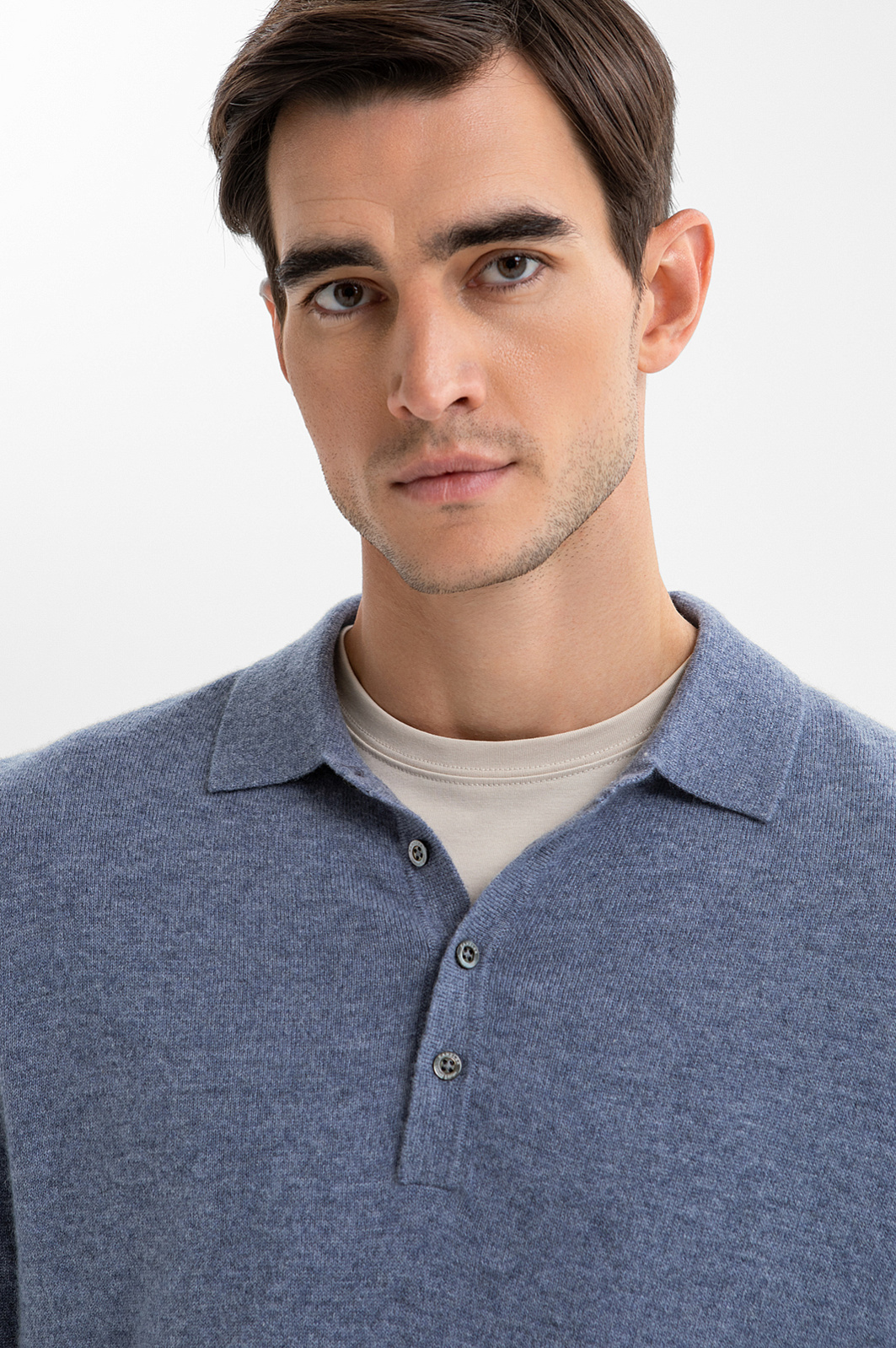 Джемпер поло из кашемира, лимитированная коллекция, цвет голубой, цена 14 990 руб., код 270480 - купить в Новосибирске в интернет-магазине KANZLER