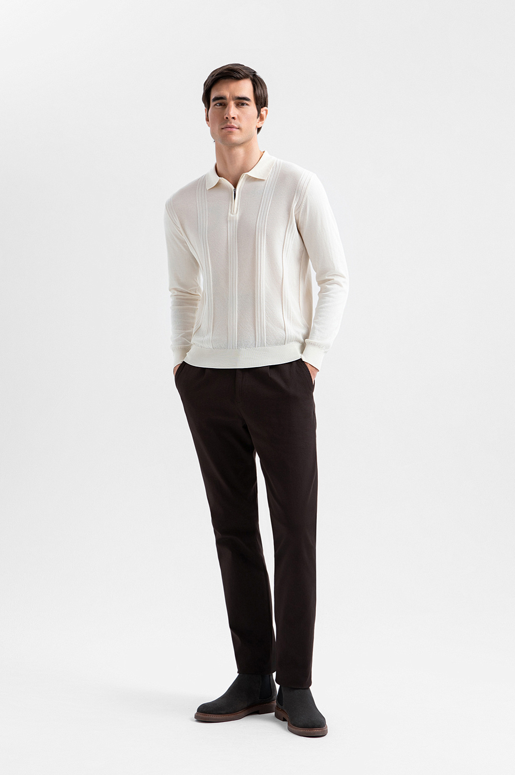 Поло KANZLER с длинным рукавом отличают безупречное качество материала, фактурная вязка и нежный молочный оттенок. Его естественная элегантность ассоциируется с аристократическим стилем дорогих европейских курортов. Лаконичный спортивный дизайн дополнен изысканными деталями. Широкие фактурные полосы создают архитектурную выразительность и визуальный ритм, а небольшая функциональная молния служит современным акцентом. Премиальный хлопок Пима (100%) — ценный длинноволокнистый материал, который ценится за шелковистую текстуру и долговечность. Мягкий трикотаж поддерживает приятную для тела температуру и сохраняет роскошный вид из сезона в сезон.