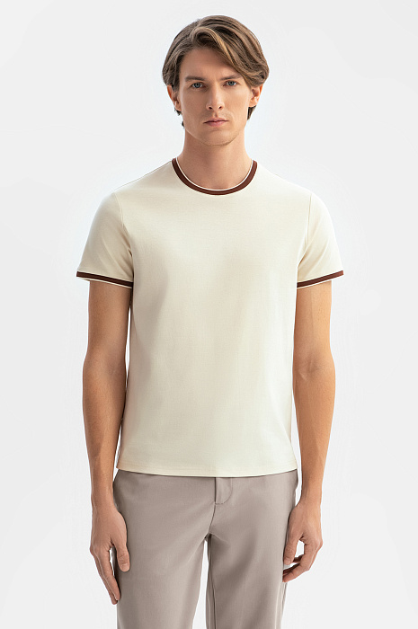 Футболка из мерсеризованного хлопка, цвет бежевый, цена 3 990 руб., код 269161 - купить в Новосибирске в интернет-магазине KANZLER