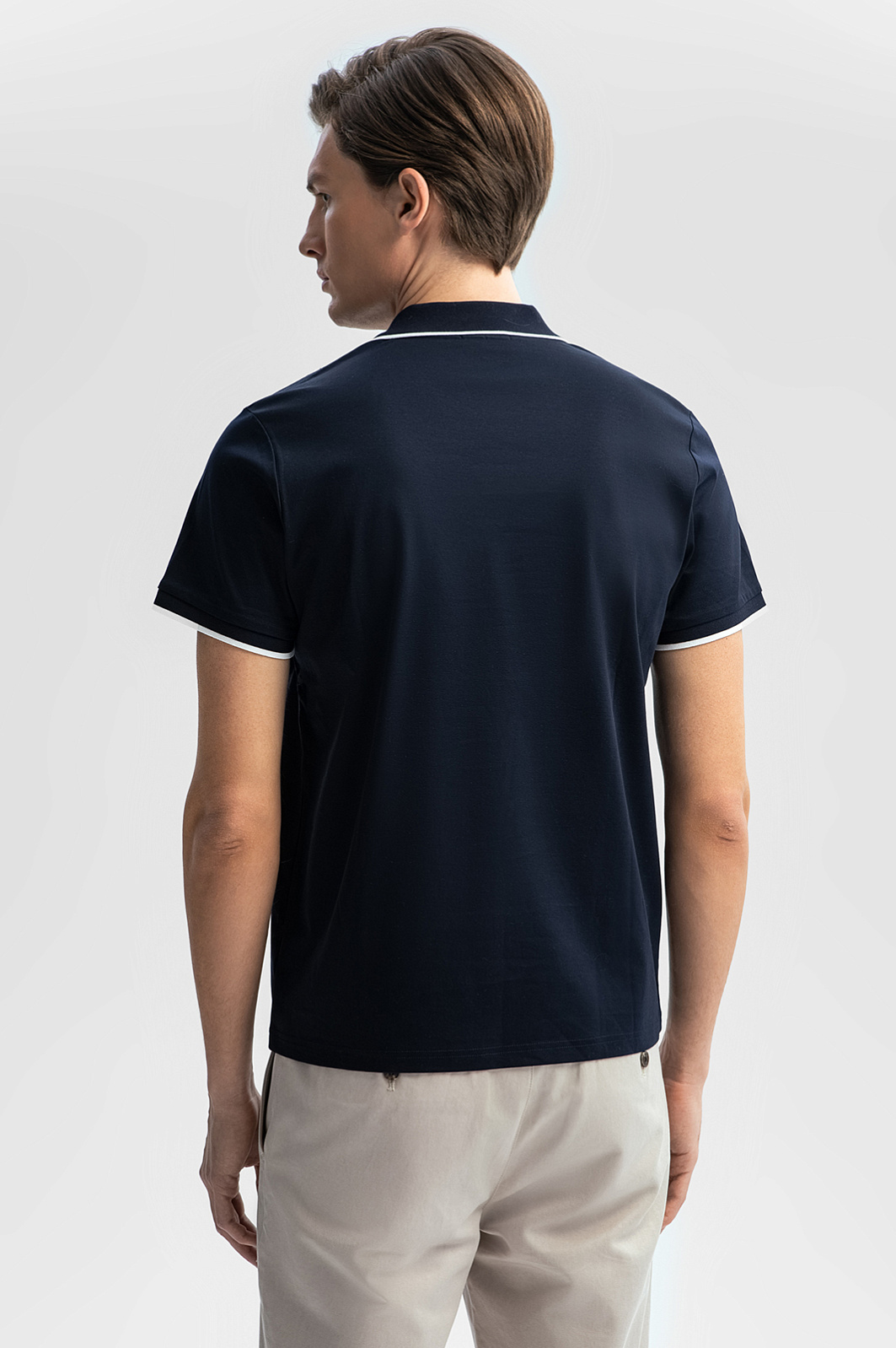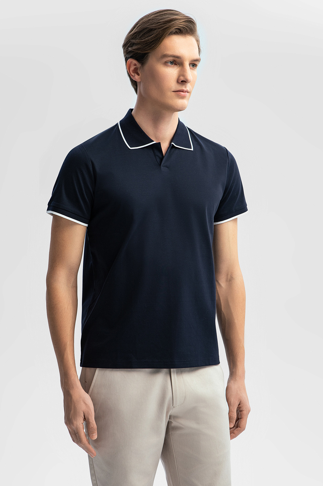 Черное поло KANZLER выполнено из уникального материала – 100-процентного мерсеризованного хлопка. Мерсеризация – процесс обработки, придающий ткани шелковистую фактуру и устойчивость к выцветанию, деформации и образованию катышков. Поло из мерсеризованного хлопка будет радовать своим качеством на протяжении многих сезонов. Черный цвет – неизменная классика и основа функционального гардероба, а белая окантовка, обрамляющая воротник и манжеты – визуальный акцент, добавляющий образу завершенности. Приталенный крой обеспечивает аккуратную посадку по фигуре, подчеркивая ее достоинства и сохраняя полную свободу движения. Дополните поло серыми брюками и оксфордами для образа в стиле умный кежуал или сочетайте с классическими брюками и оксфордами для делового образа.