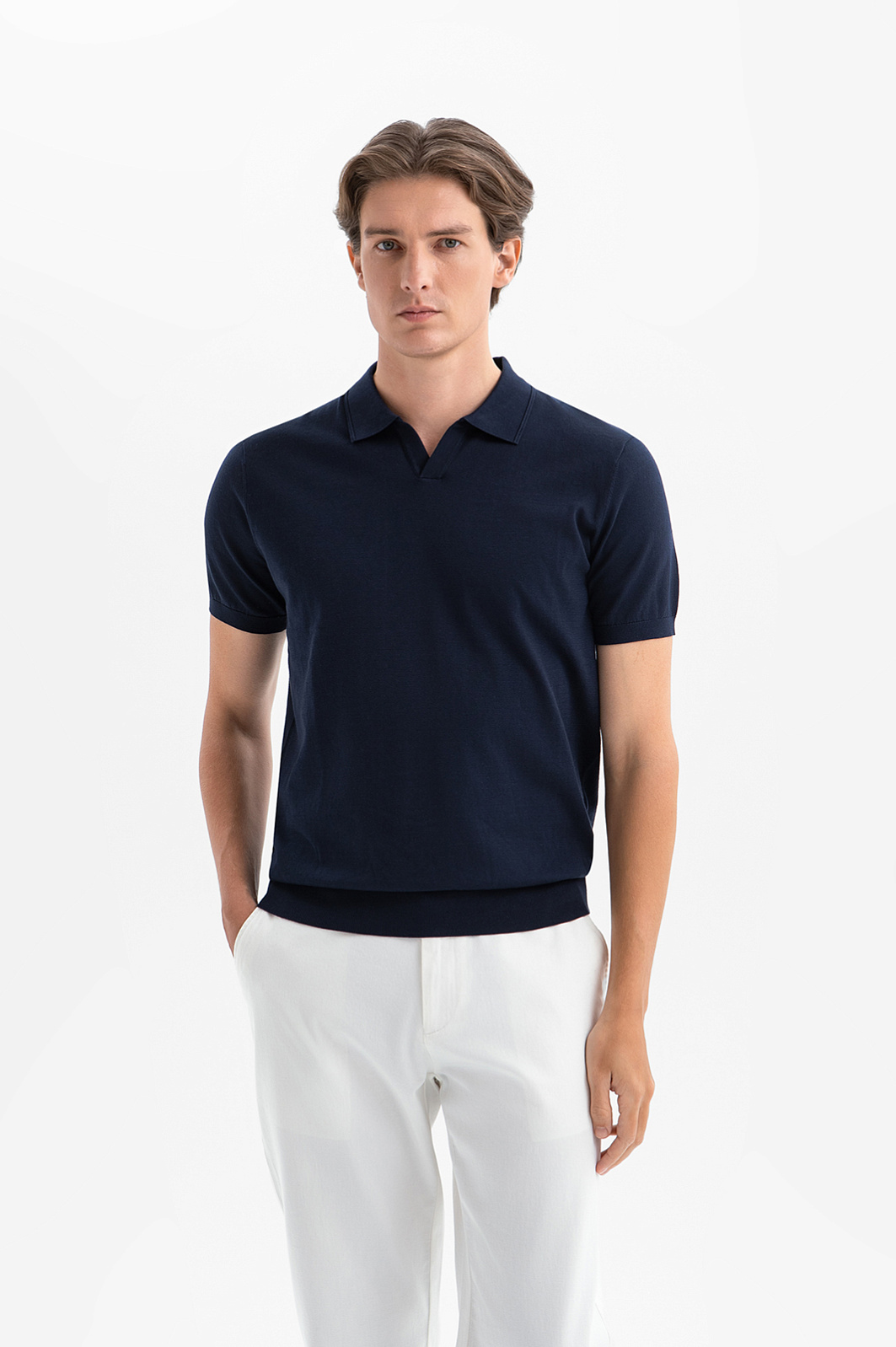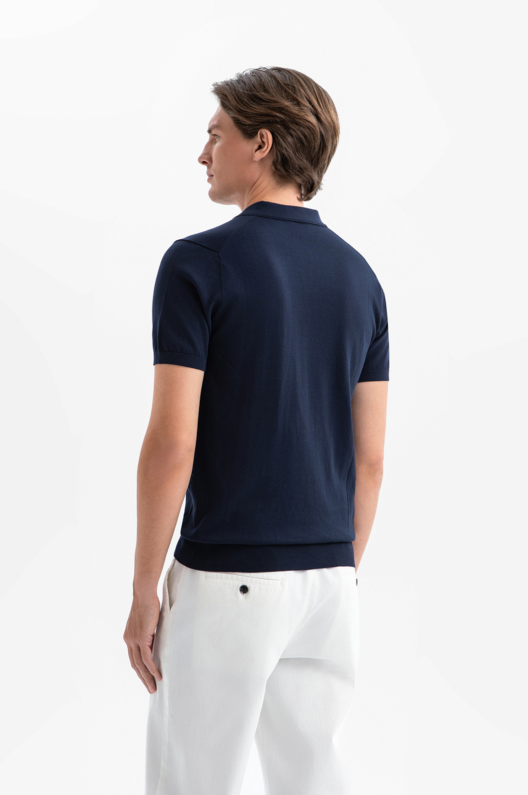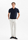 Поло KANZLER из 100% премиального хлопка Пима — стильная универсальная вещь для тёплых дней. Глубокий чернильный оттенок служит основой для повседневных образов в широком диапазоне — от деловых до вечерних аутфитов. Отложной воротник и небольшой треугольный вырез придают модели расслабленный характер, не выходя за рамки городской эстетики. Трикотажные резинки на рукавах и по низу формируют аккуратный силуэт. Эластичный трикотаж не ограничивает свободу движений. В составе материала — драгоценный хлопок Пима. Его длинные тонкие волокна создают ощущение мягкого нежного прикосновения и поддерживают идеальный микроклимат.