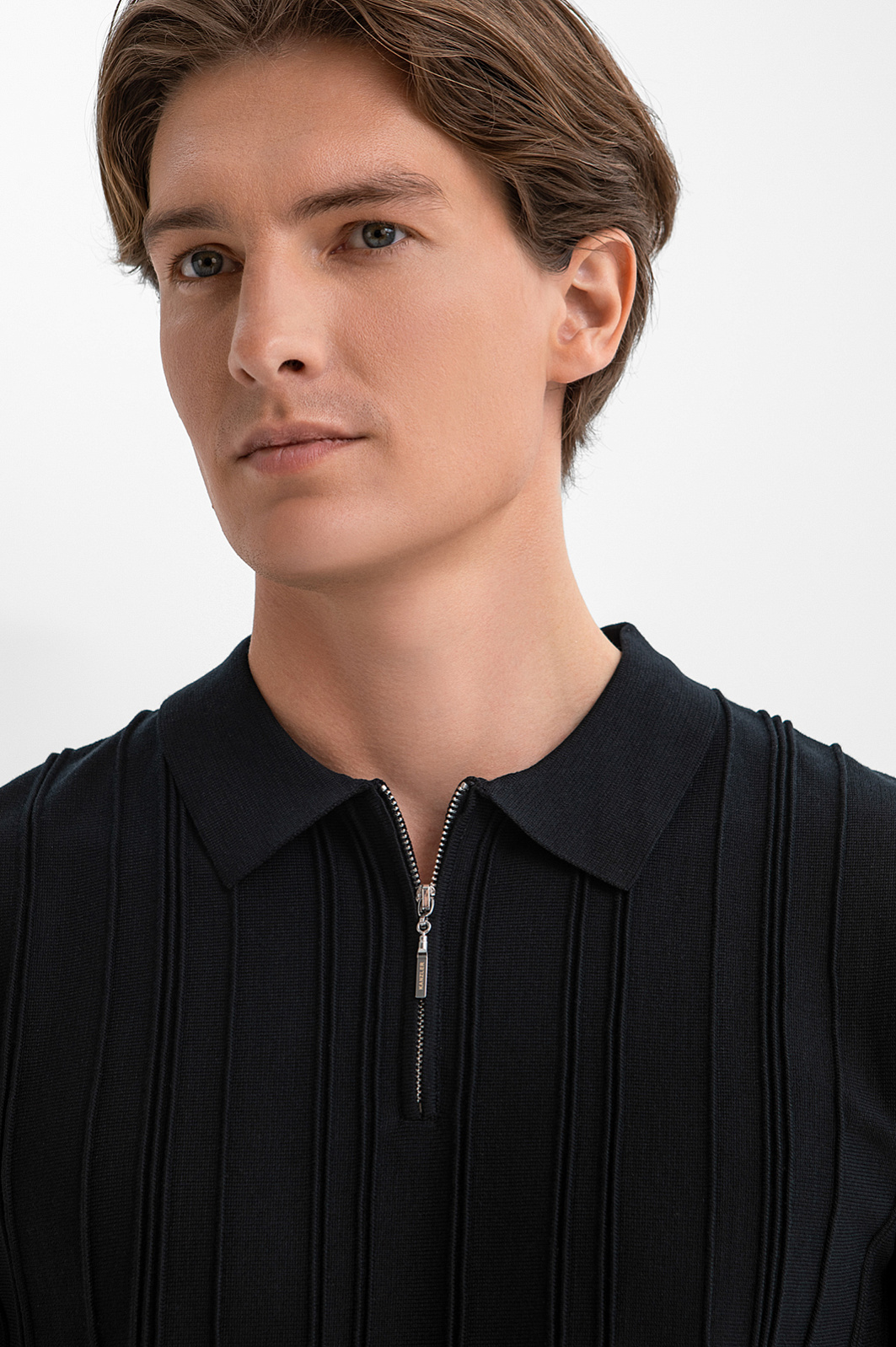 Роскошное поло KANZLER из чистого хлопка с застёжкой-молнией настолько универсально, что его можно носить и в повседневной жизни, и на неформальных светских мероприятиях, сочетая с джинсами и городскими брюками. Элегантность модели подчёркивают глубокий чёрный цвет и рельефные вертикальные полосы на передней части, придающие поло выразительность. Трикотажные резинки на рукавах и по низу служат аккуратной посадке. Трикотаж из хлопка (100%) — мягкий, пластичный и приятный к телу материал. Натуральные гипоаллергенные волокна обеспечивают отличную воздухопроницаемость, тактильный комфорт и свежесть в течение всего дня.