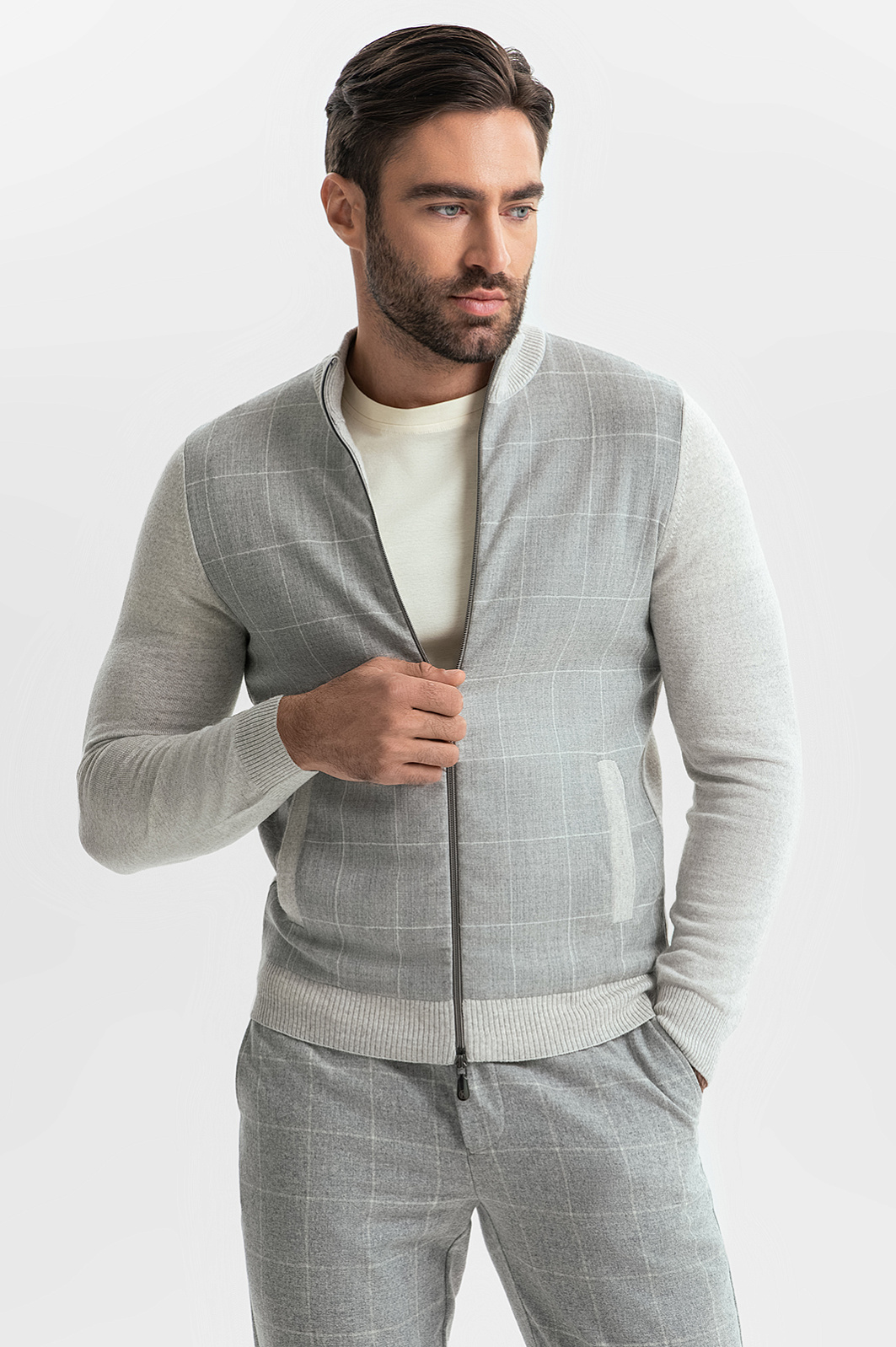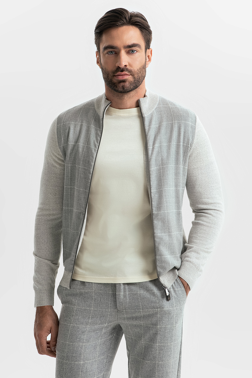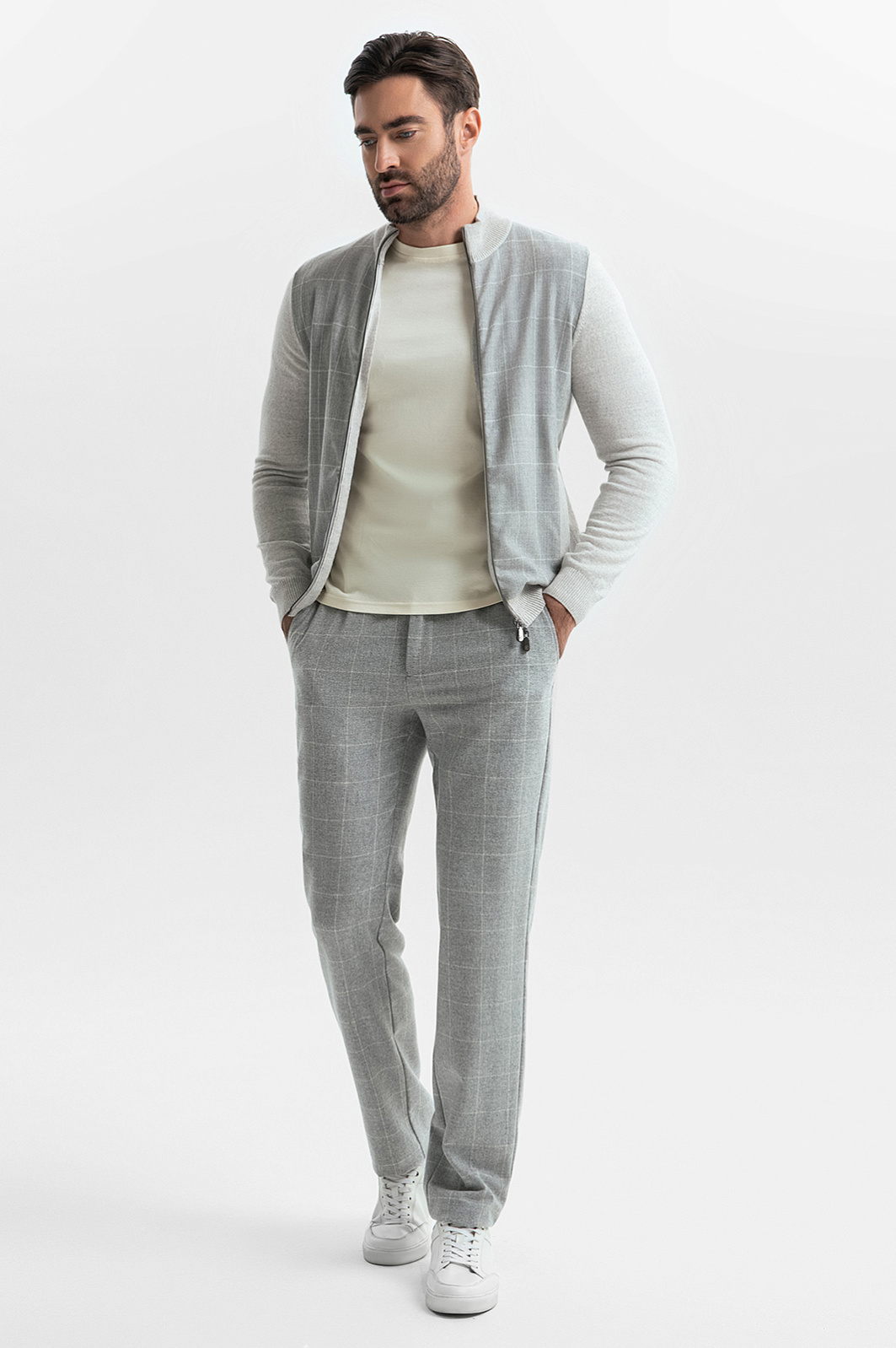 Бестселлер сезона — стильный кардиган с узором в клетку из премиальной коллекции Limited Edition. Этот кардиган создан для тех, кто ценит качество и уникальный дизайн. Изготовлен из мягкой, невесомой пряжи из 100% натуральной шерсти. Плотный трикотаж не просвечивает, выглядит дорого и изысканно, при этом добавляет уют в повседневные образы. Особое внимание дизайнеры уделили контрастному принту и элементам колорблокинга, которые эффектно обыгрывают оттенки серого. Свободный силуэт и застежка на молнию делает модель оптимальной для многослойных образов — изделие комфортно носить как второй слой — например, в сочетании с футболкой из нашей коллекции. Кардиган снабжен функциональными карманами для важных мелочей, что добавляет практичности. Завершите образ стильными брюками в клетку для создания утонченного ансамбля.