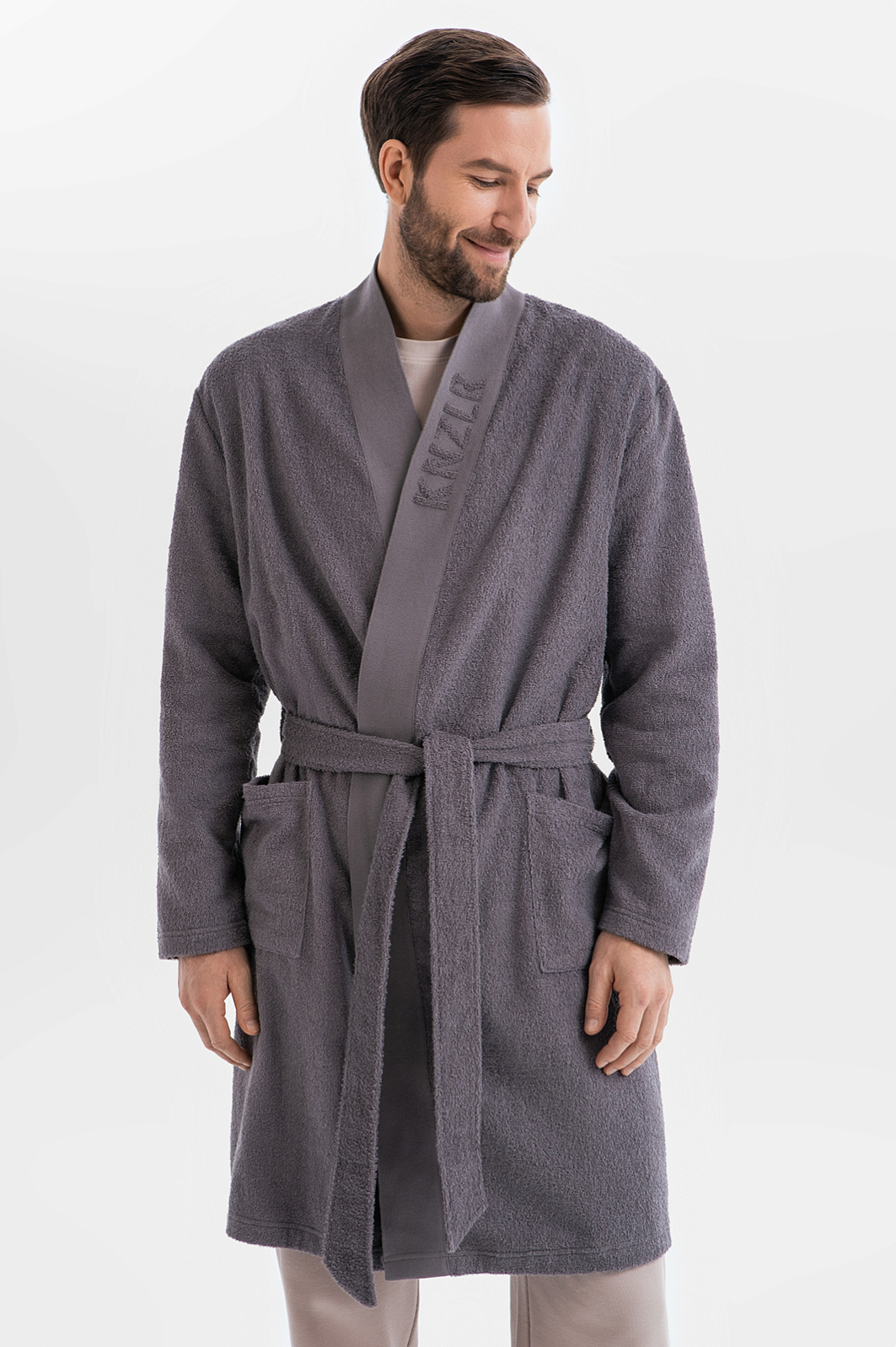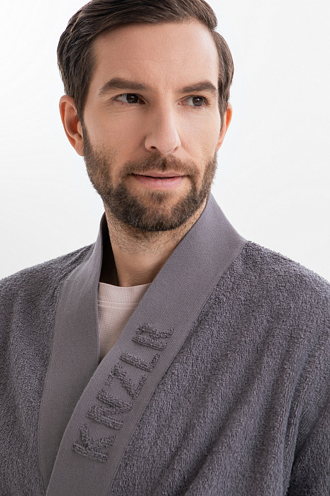 Махровый халат KANZLER благородного серого оттенка из чистого хлопка с поясом будет приятно надеть после душа, бассейна или спа-процедур, чтобы насладиться спокойным безмятежным отдыхом. Полы отделаны широкой плотной планкой с крупным фактурным крупным логотипом, которая придает халату изящество и сходство с кимоно. Свободный крой не стесняет движений. Телефон и важные мелочи можно держать в больших вместительных карманах. Мягкая ткань из 100-процентного хлопка с петельным ворсом хорошо впитывает влагу, сохраняет тепло тела и не мнется.