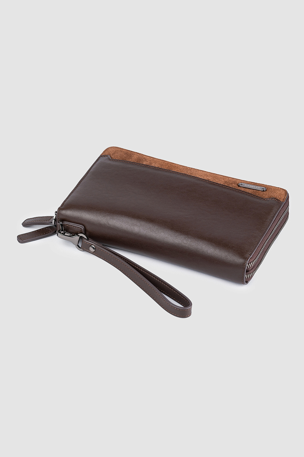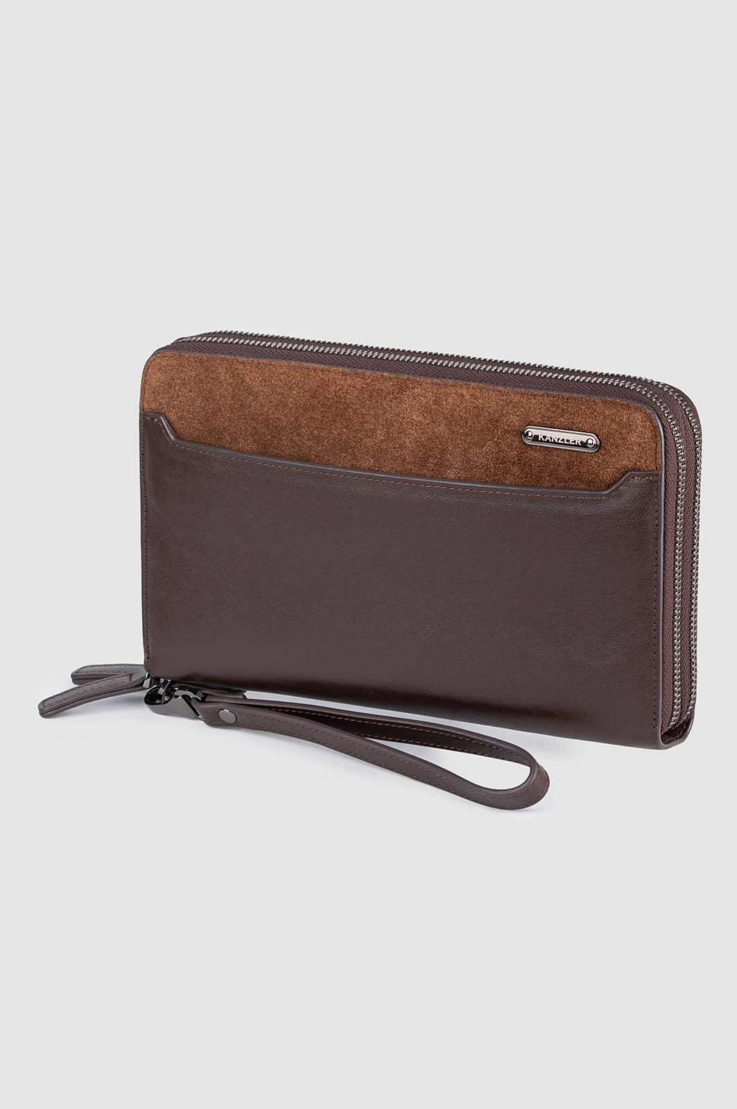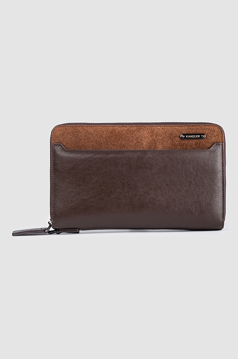 Клатч из натуральной кожи и замши, цвет коричневый, цена 12 990 руб., код 270862 - купить в Новосибирске в интернет-магазине KANZLER