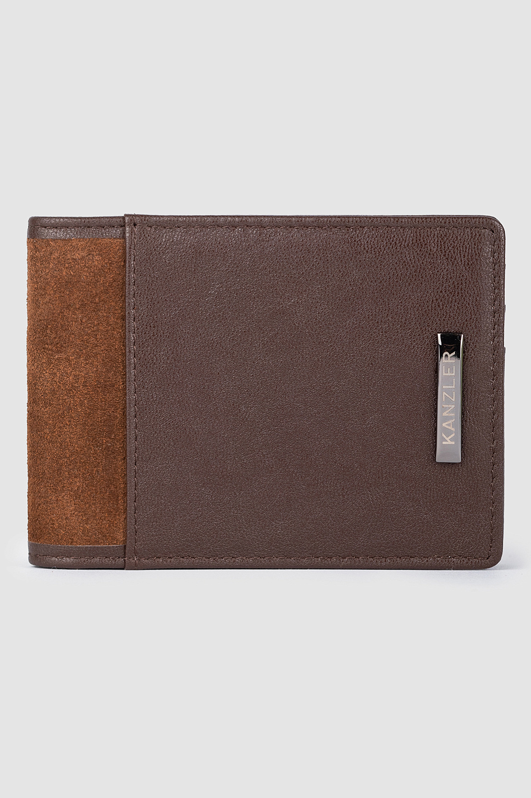 Кошелек из натуральной кожи и замши, цвет коричневый, цена 5 990 руб., код 270863 - купить в Новосибирске в интернет-магазине KANZLER