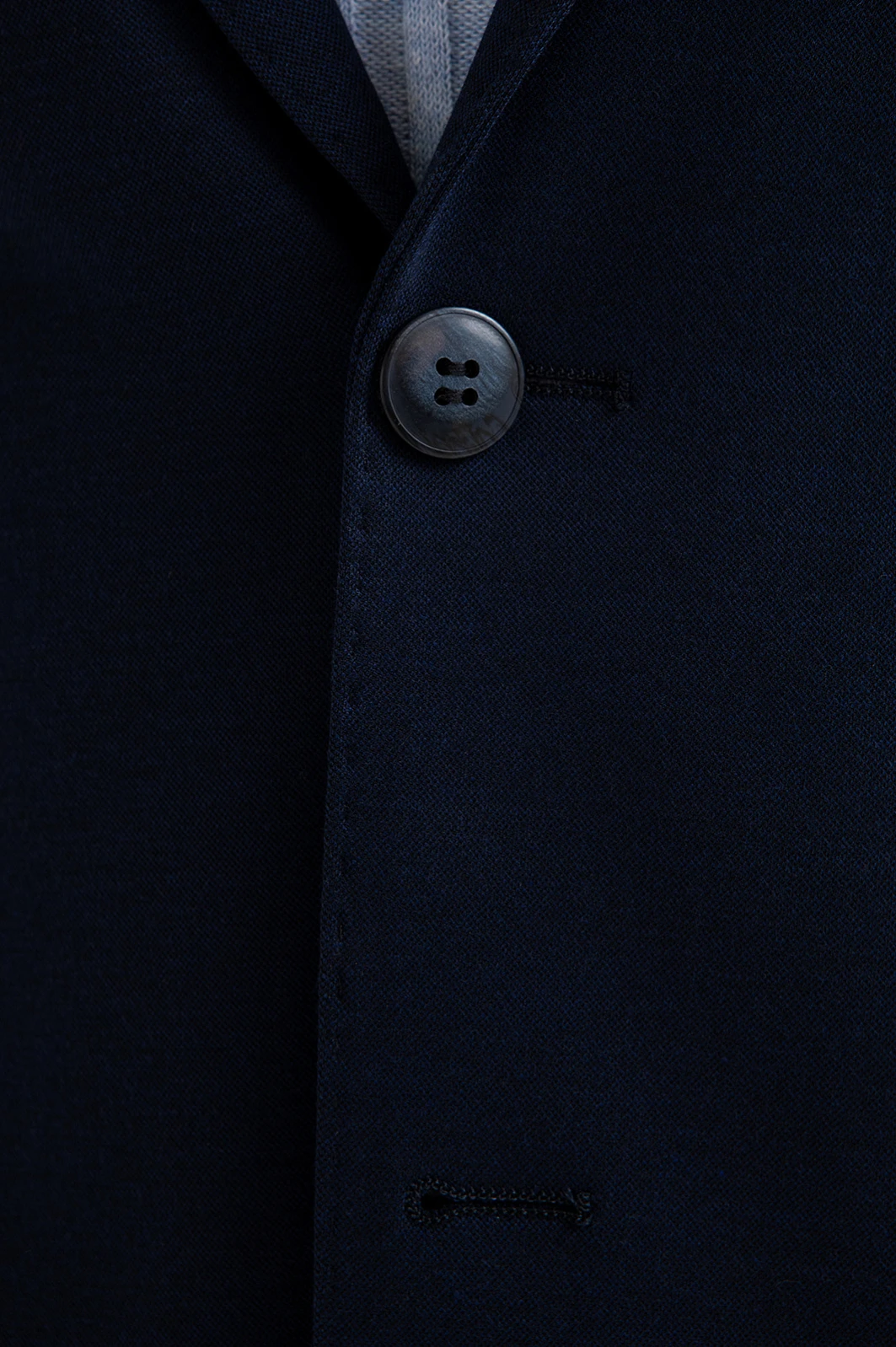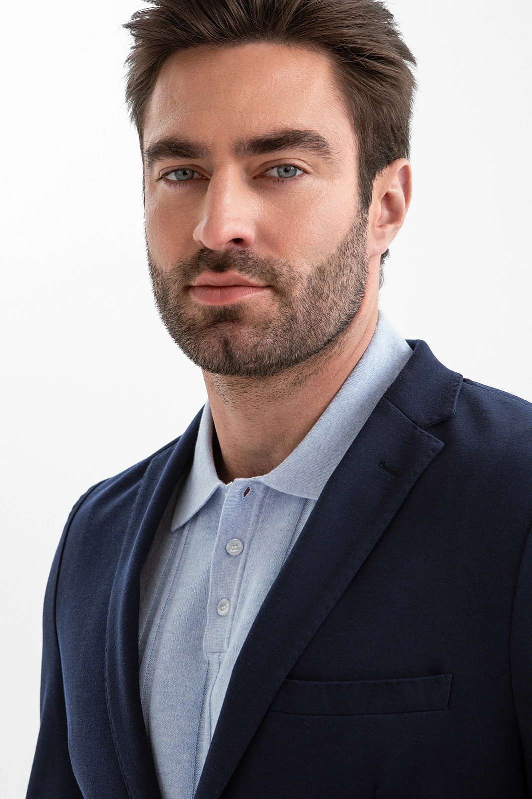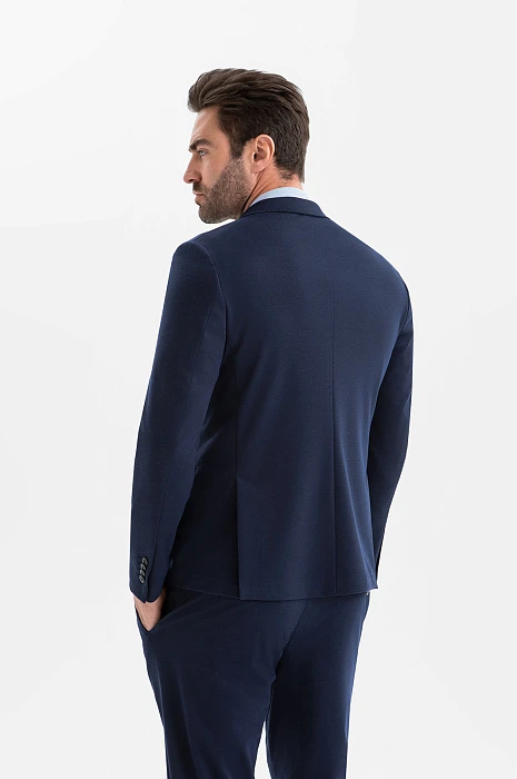 Синий костюм KANZLER зауженного силуэта — воплощение современного делового стиля, союз элегантности и продуманного комфорта. Комплект включает лёгкий однобортный пиджак с прорезными карманами и брюки на кулиске с деликатными защипами на поясе. Элементы пары отличает слегка зауженный крой, который подчёркивает мужественный силуэт и придаёт образу элегантность. Практичная ткань не требует специального ухода. В составе — прочные полиэстер и нейлон с добавлением дышащей вискозы и эластичного спандекса. Технологичный смесовый материал хорошо держит форму и легко адаптируется к индивидуальным особенностям фигуры.