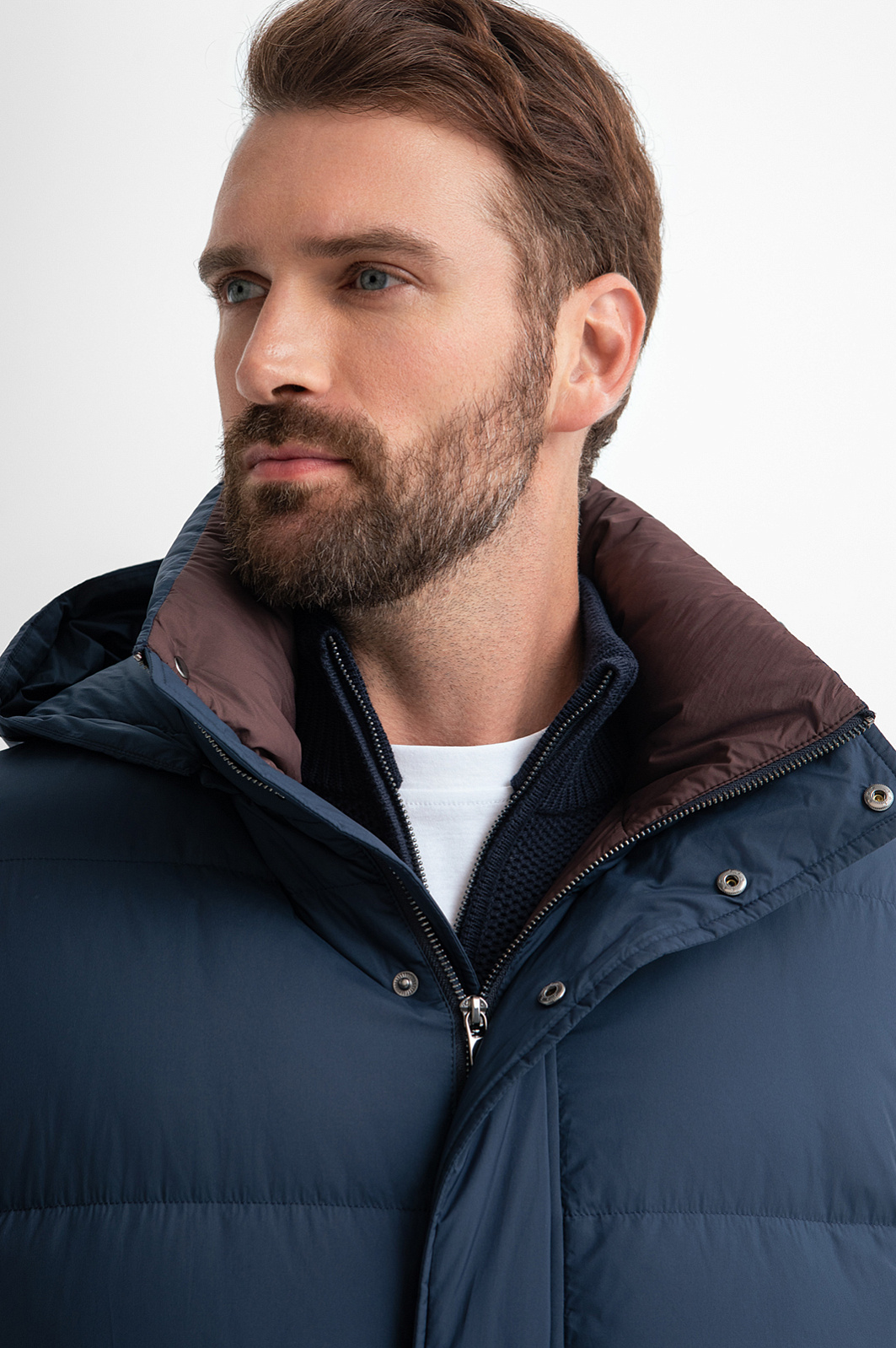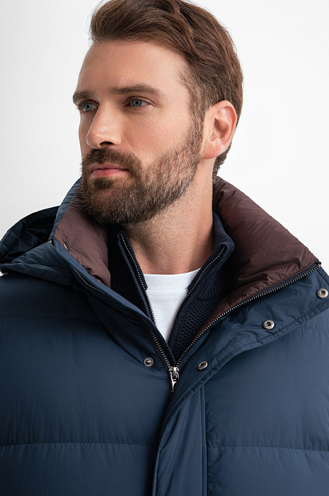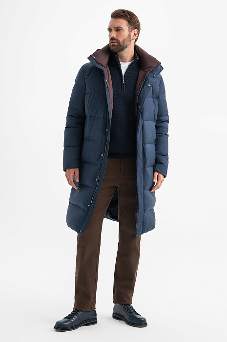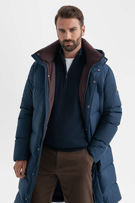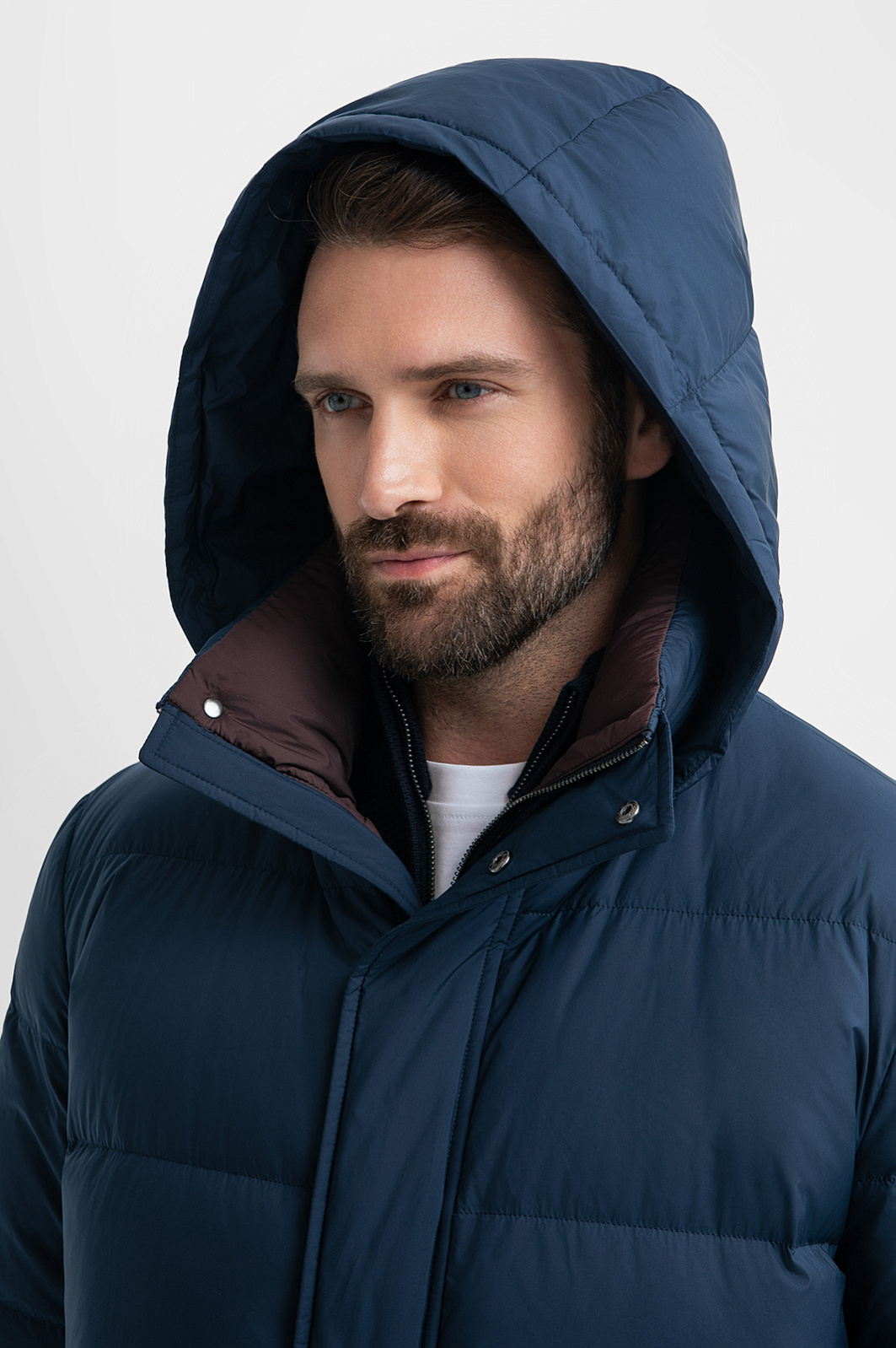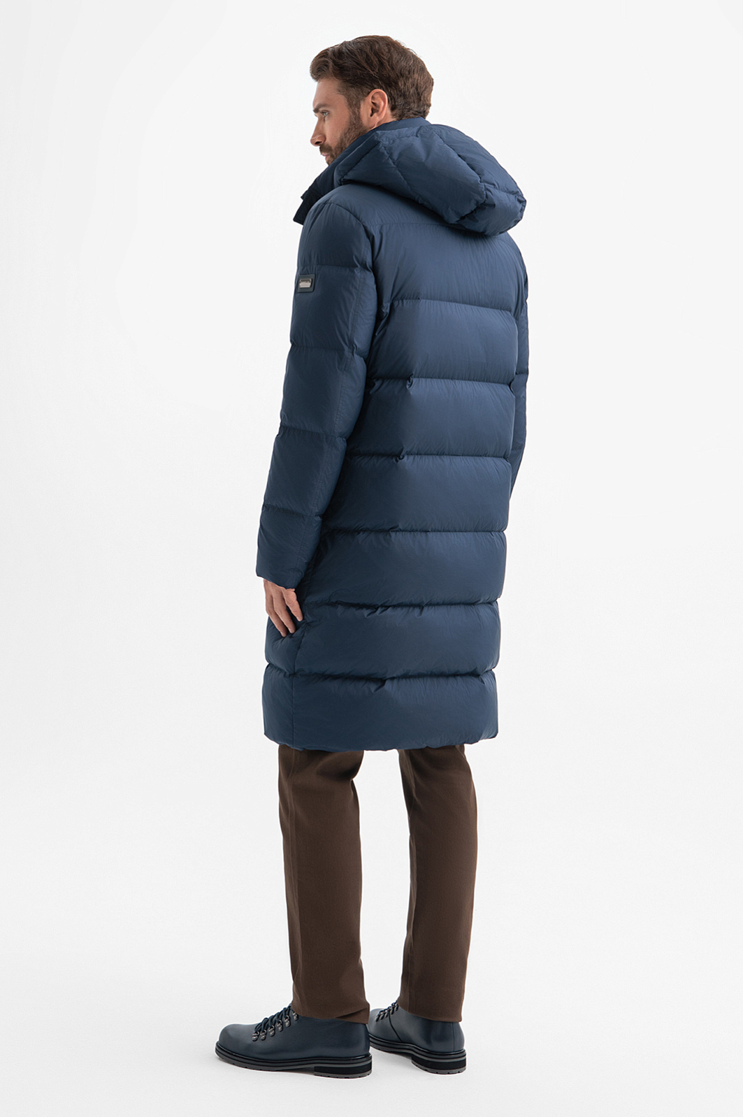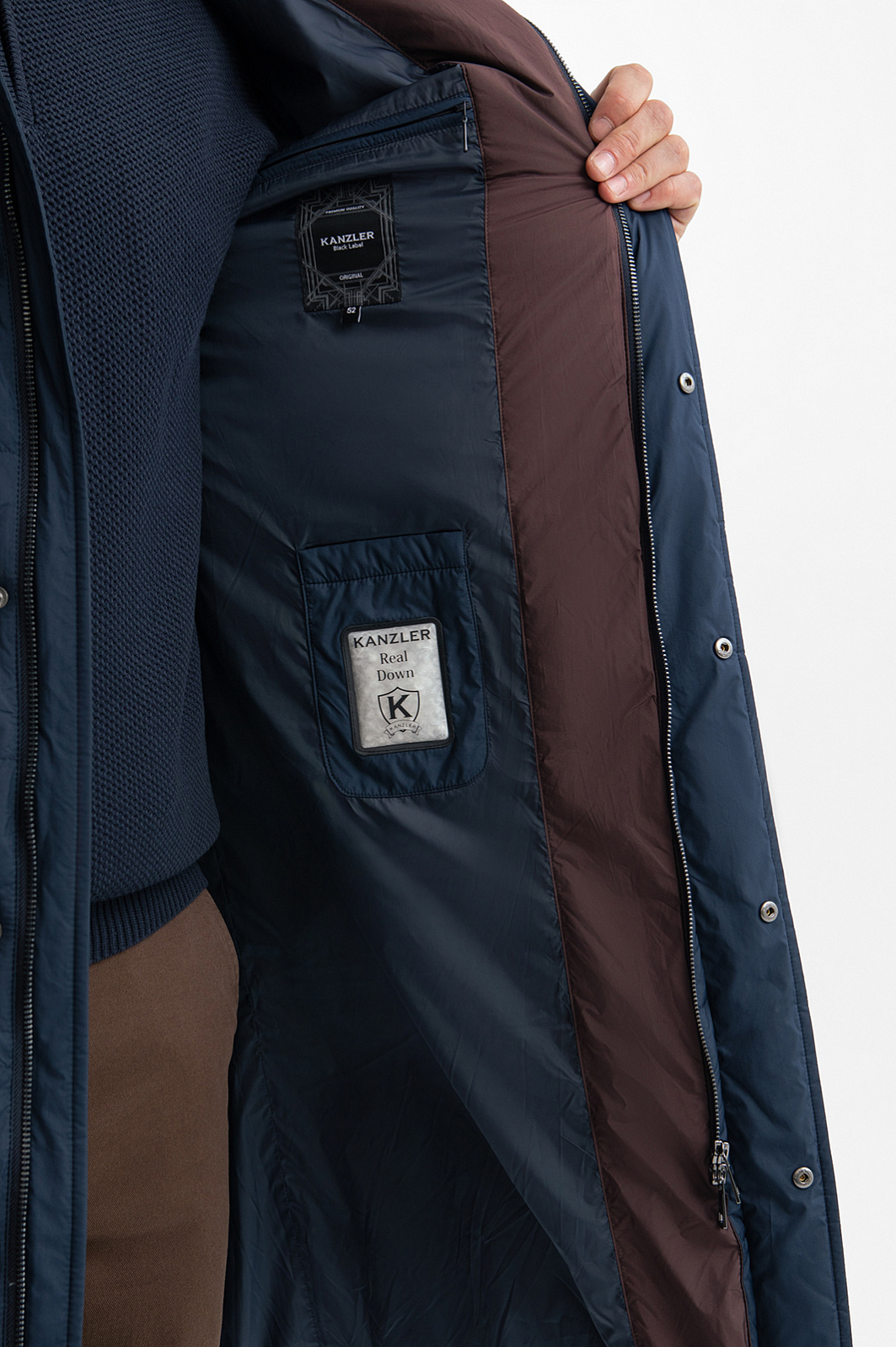 Пуховик удлиненный с водоотталкивающей обработкой, цвет синий, цена 29 990 руб., код 268573 - купить в Новосибирске в интернет-магазине KANZLER