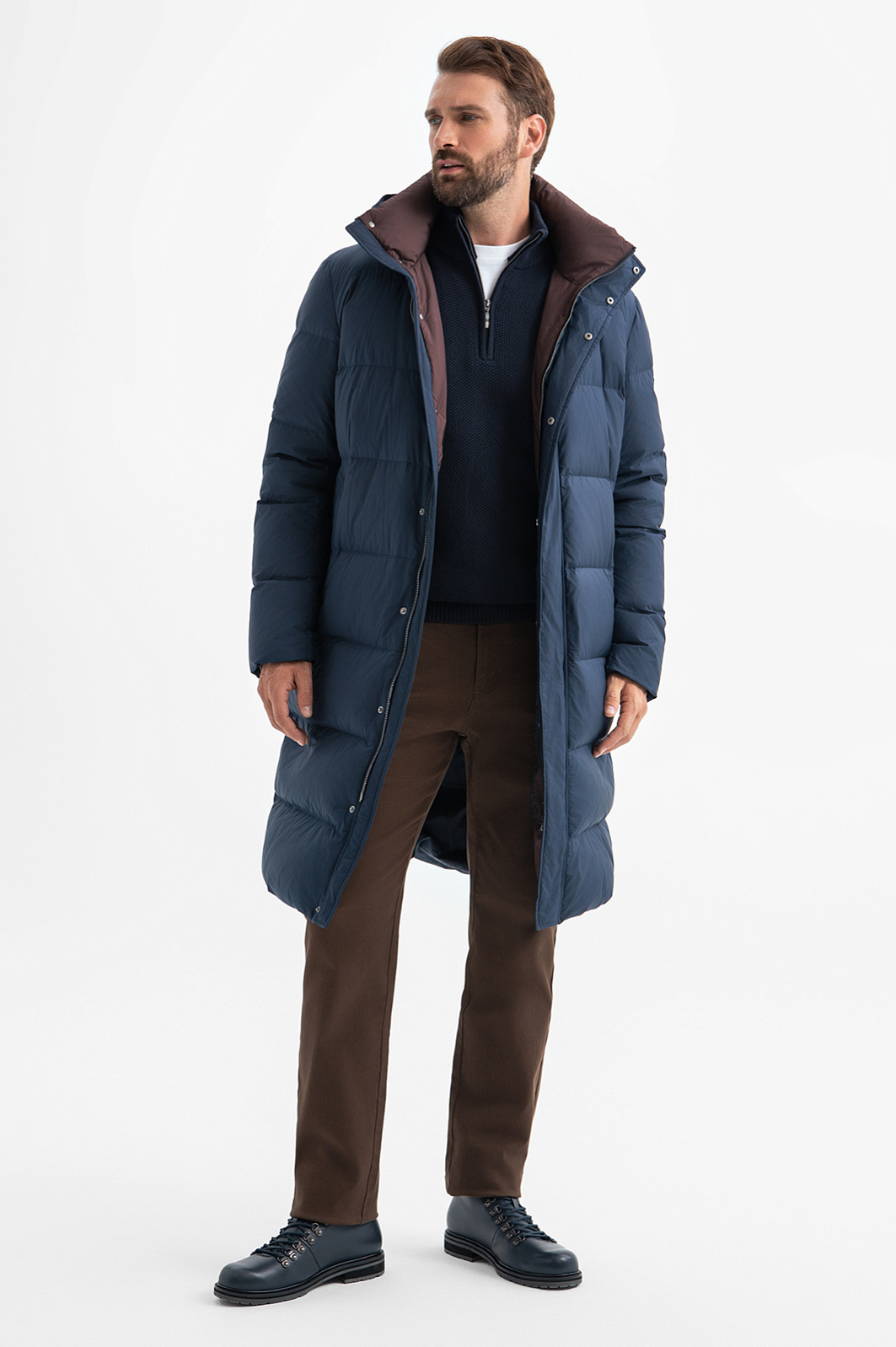 Стильный удлиненный пуховик KANZLER c водоотталкивающей обработкой — идеальный выбор для холодного времени года. Модель оснащена двумя вместительными карманами, высоким воротником и капюшоном, обеспечивающими надежную защиту от ветра и холода. Застегивается на металлическую молнию, скрытую планкой, что придает изделию лаконичный вид. Особое внимание привлекает оригинальное сочетание благородного синего оттенка с контрастной внутренней отделкой воротника и планки. Наполнитель модели — 90% пух и 10% перо. Высокий показатель пуха обеспечивает превосходную теплоизоляцию и легкость. Этот пуховик сочетает в себе стиль и функциональность, предлагая комфорт и защиту от холода. Принадлежность бренду отметили небольшим металлическим патчем с логотипом. Параметры модели: рост 189, 102-80-99 Размер на модели: 50