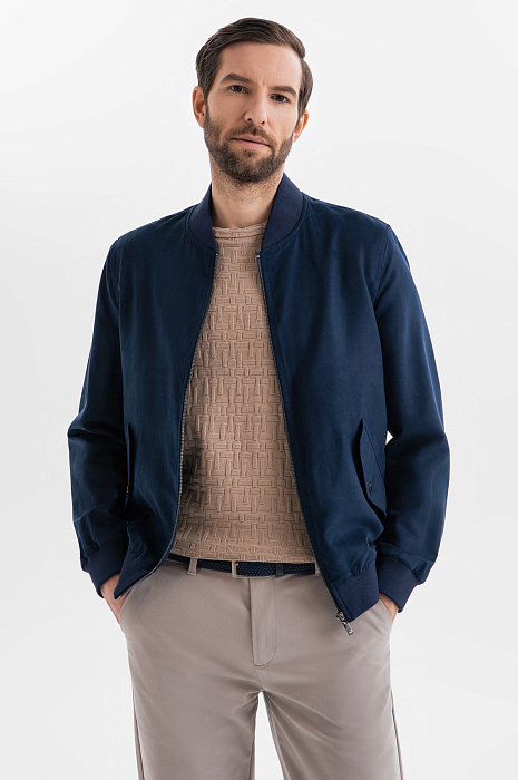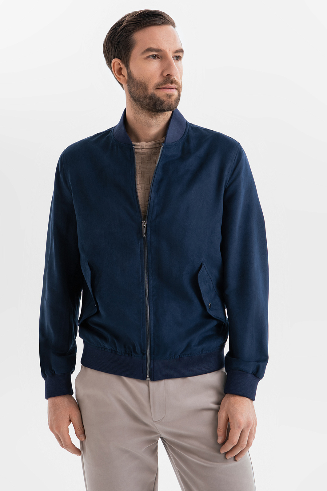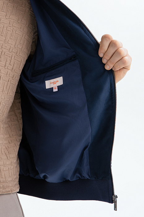 Бомбер из алькантары, цвет синий, цена 14 990 руб., код 269220 - купить в Новосибирске в интернет-магазине KANZLER