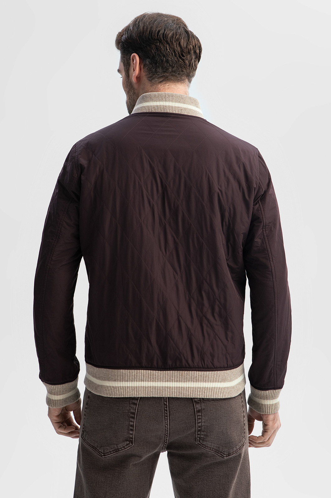 Роскошный двусторонний бомбер KANZLER — стильная, удобная и функциональная верхняя одежда из лимитированной коллекции, все модели которой отшиваются из дорогих изысканных тканей. Демисезонную куртку можно носить на обе стороны, руководствуясь настроением и погодными условиями. Одна сторона — серая, с бежевыми рукавами. Основная часть сшита 100-процентной шерсти итальянской мануфактуры Vitale Barberis Canonico, которая в 1663 году поставляла ткани для костюмов герцога Савойского, а пару лет назад отмечала свое 360-летие. Это немнущийся воздухопроницаемый материал, который поддерживает комфортную температуру и сохраняет тепло. Другая сторона куртки — стеганая, из прочной непродуваемой полиэстеровой ткани оттенка горького шоколада. Акцентными деталями служат бежевые с белой полосой фактурные трикотажные резинки снизу, на воротнике и манжетах. Параметры модели: рост 189, 102-80-99 Размер на модели: 50