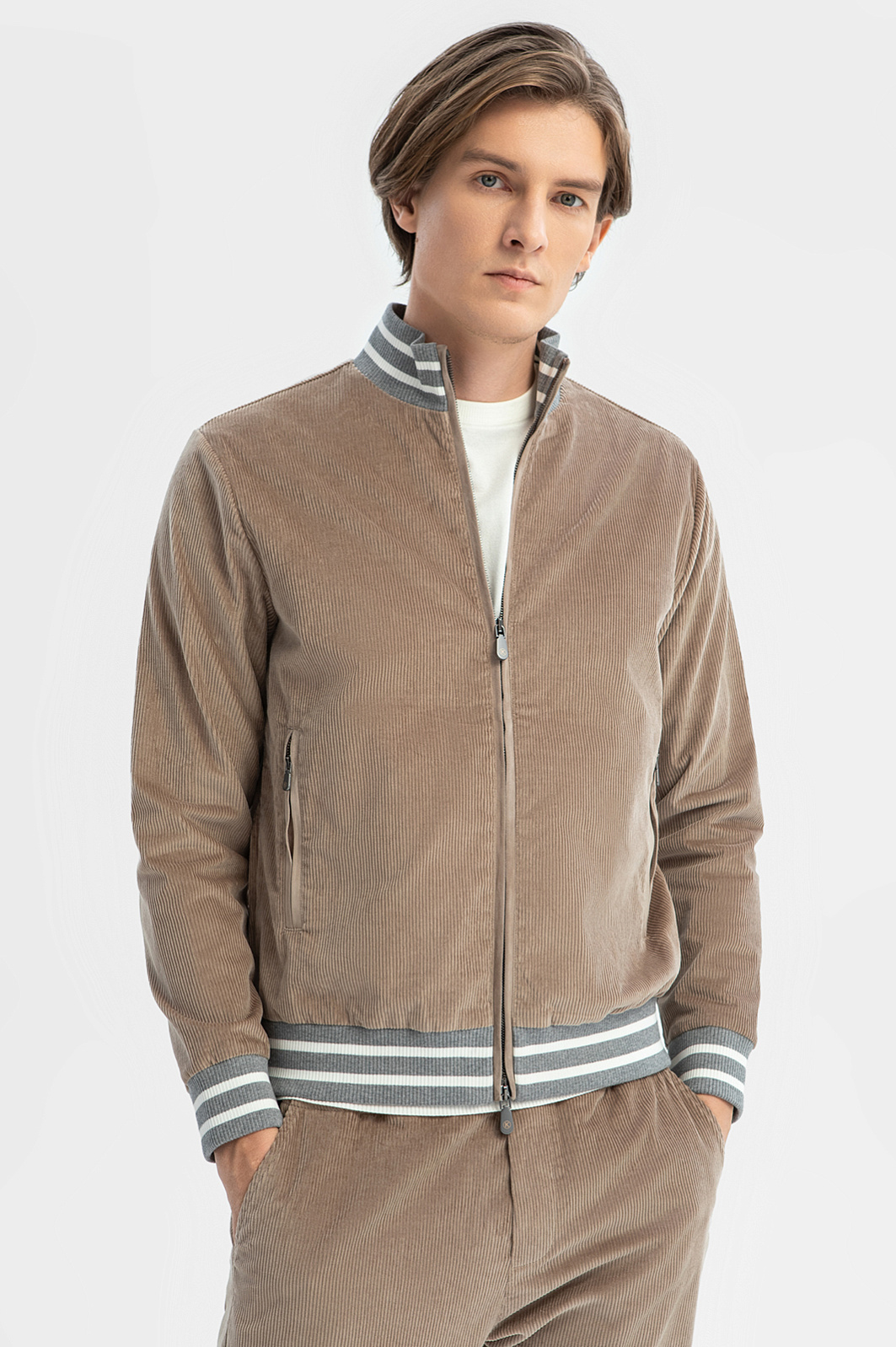 Бомбер из вельвета Duca Visconti Di Modrone, лимитированная коллекция, цвет бежевый, цена 24 990 руб., код 269373 - купить в Новосибирске в интернет-магазине KANZLER