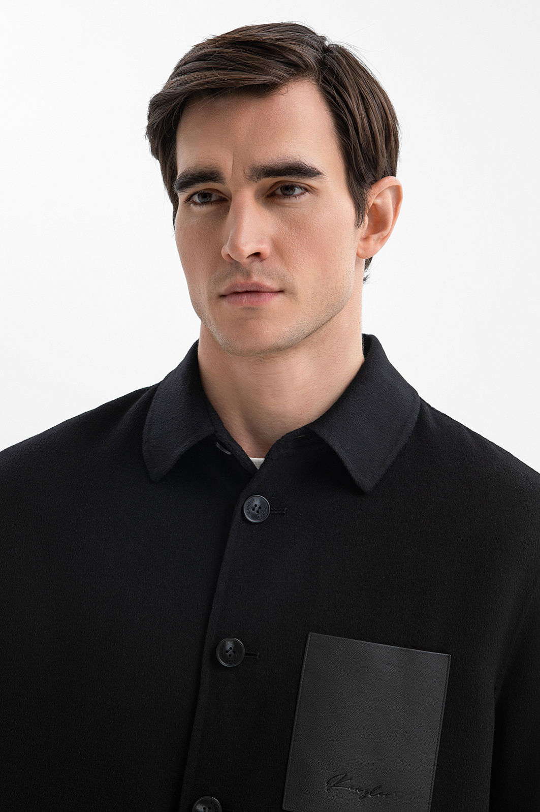 Чёрная куртка-рубашка KANZLER легко становится акцентом образа, не нуждающимся в сложной стилизации. Эффектный минималистичный дизайн выстроен на монохроме и рубашечном крое. Нагрудный карман из гладкой кожи, выделяясь на фоне матового полотна, служит стильным акцентом. Смесовая ткань на основе шерсти — практичный материал, который сохраняет безупречный вид сезон за сезоном. Натуральные гипоаллергенные волокна шерсти, укрепленные нитями нейлона и вискозы, приобретают дополнительные свойства — прочность, износоустойчивость и пластичность.