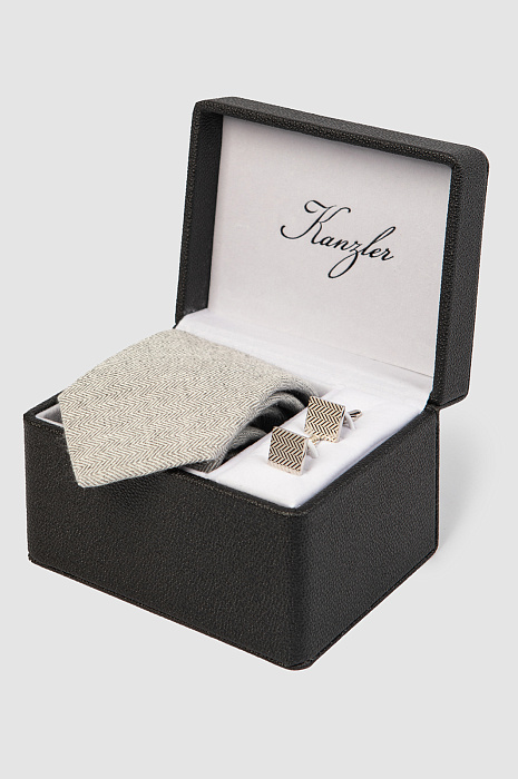 Подарочный набор (галстук + запонки), цвет серый, цена 4 990 руб., код 268130 - купить в Новосибирске в интернет-магазине KANZLER