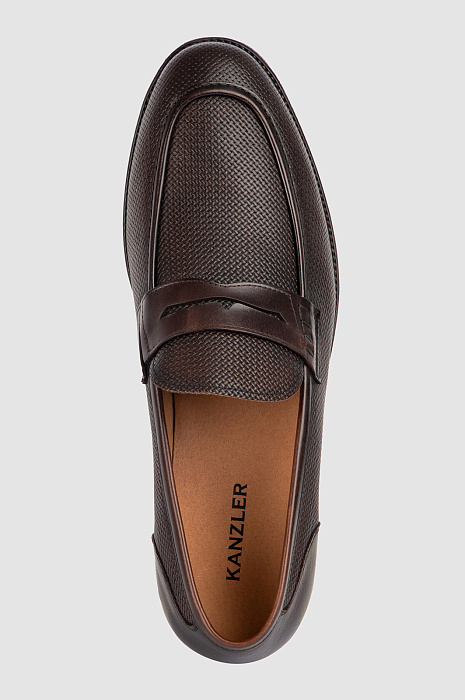 Элегантные темно-коричневые лоферы KANZLER — удобная универсальная обувь, которую можно носить с классическими костюмами и повседневной городской одеждой — джинсами, бомбером, поло или футболкой. Кожаный верх мягко облегает ногу. Матовая фактурная основа сочетается с гладкой кожей, из которой сделаны задник и канонический язычок с прорезью. Внутренняя часть со стелькой тоже сделаны из натуральной кожи. Устойчивая подошва — из резины.