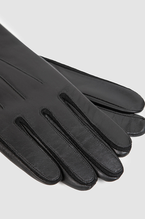 Перчатки из натуральной кожи и смесовой шерсти, цвет черный, цена 4 990 руб., код 270343 - купить в Новосибирске в интернет-магазине KANZLER