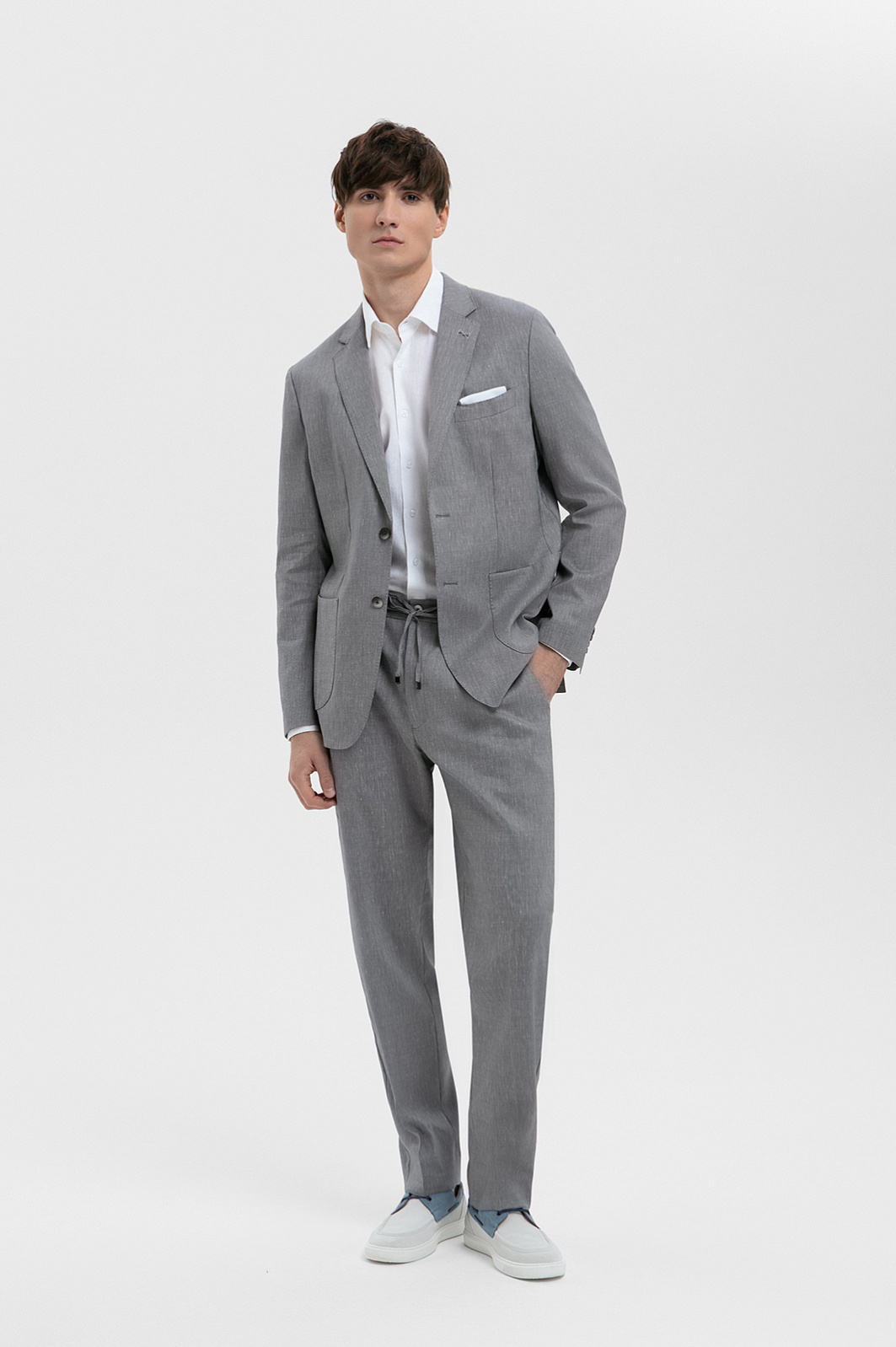 Пиджак из шерсти, льна и шелка, цвет серый, цена 34 990 руб., код 271037 - купить в Новосибирске в интернет-магазине KANZLER