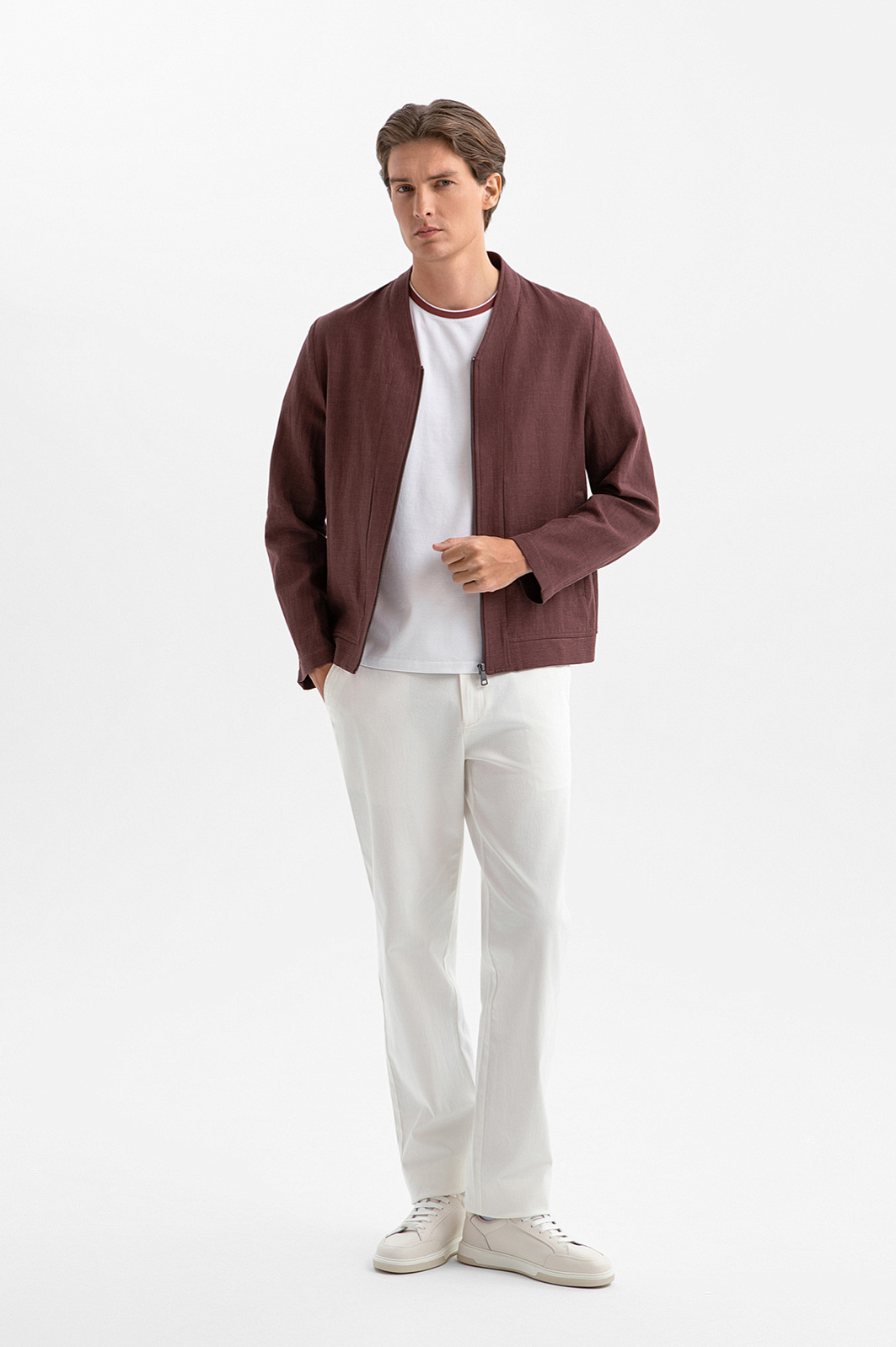 Коричневый пиджак KANZLER из хлопка и льна без воротника на молнии напоминает лёгкую куртку для тёплых дней. Идеальный выбор для прогулки в парке, неформальной встречи или свидания. Прямой свободный крой, в котором креативно сочетаются элементы куртки, пиджака и рубашки, формирует современный минималистичный силуэт. Оттенок молочного шоколада и естественная фактура материала придают образу мягкость. Смесовая ткань из натуральных волокон — гипоаллергенный воздухопроницаемый материал. Хлопок поддерживает оптимальный микроклимат. Лён укрепляет полотно и придаёт структурность.