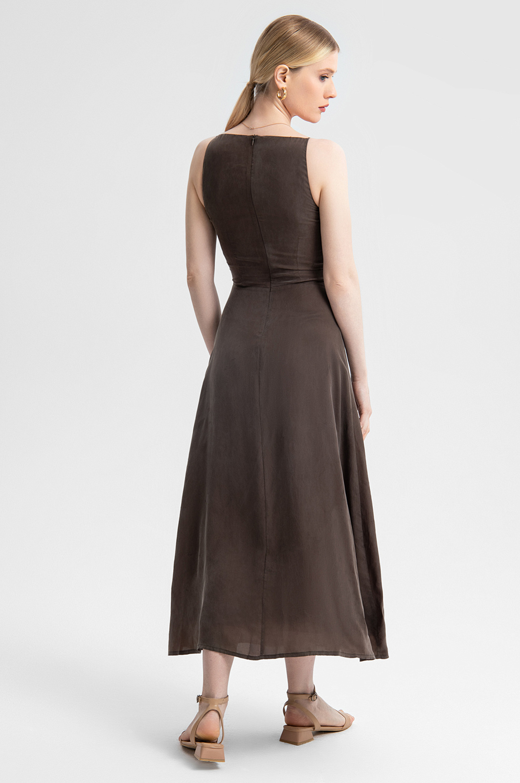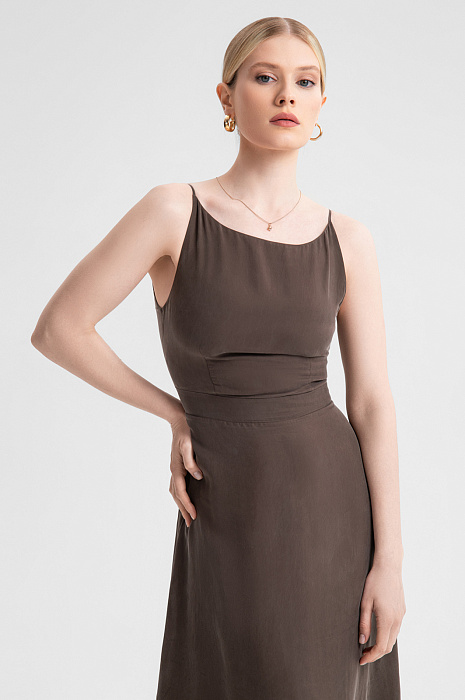 Платье-миди из купро, цвет коричневый, цена 12 990 руб. - купить в интернет-магазине KANZLER