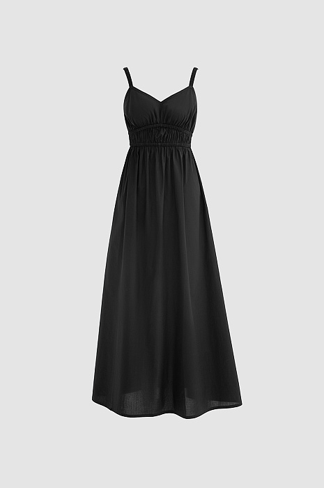 Длинное чёрное платье KANZLER из хлопка — женственная вещь, которая может стать основой стильного романтического образа. В тёплые дни модель идеально подойдёт для выхода в город или свидания. Крой мягко подчёркивает женственные формы, привлекая внимание к линии талии. Очарование платью добавляют бретели, широкий вырез на груди, оставляющий открытыми ключицы, и присборенная спинка. Мягкий лёгкий хлопок — идеальный материал для лета. Он приятен к телу и не раздражает даже самую чувствительную кожу. Его гипоаллергенные волокна хорошо пропускают воздух, поддерживая ощущение свежести в течение дня.