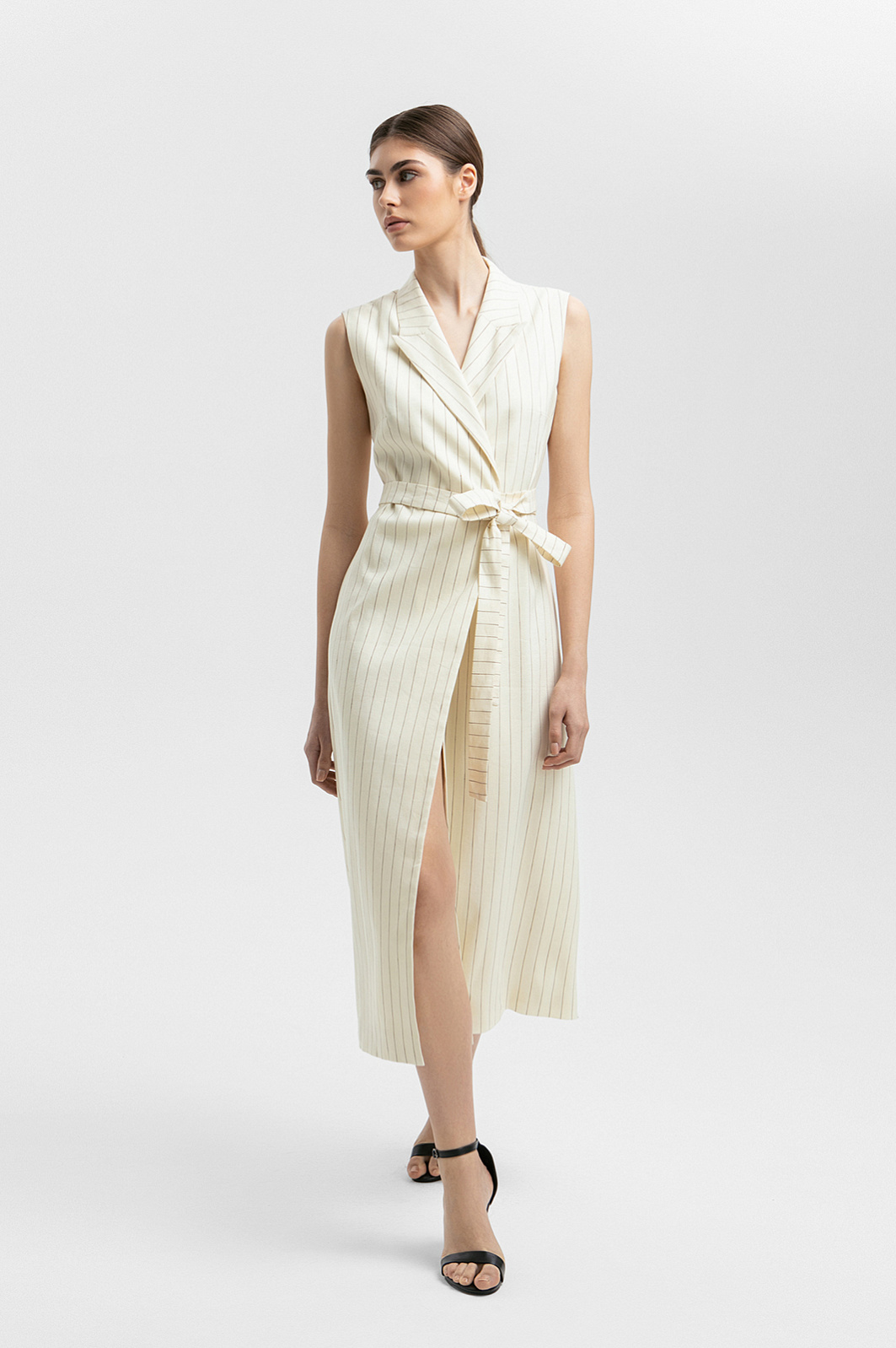 Платье из шерсти, льна и шелка, цвет молочный, цена 24 990 руб. - купить в интернет-магазине KANZLER