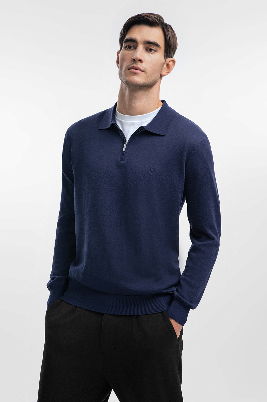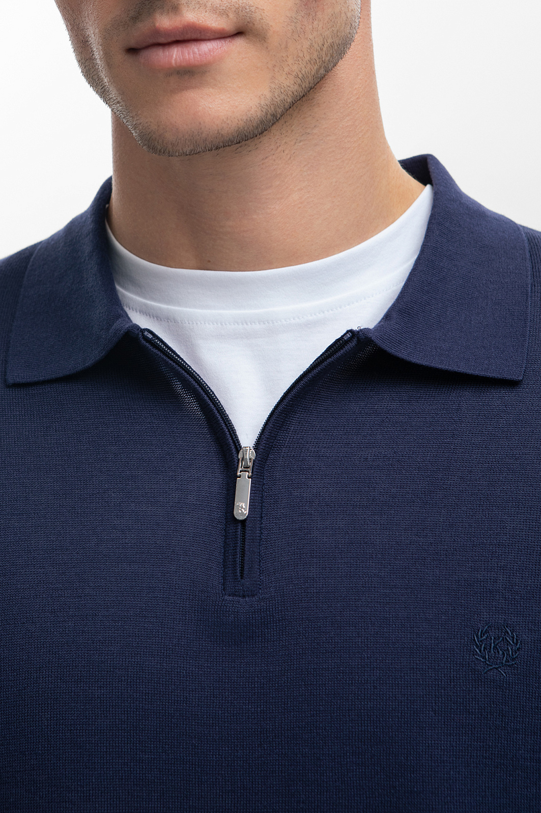 Поло KANZLER из лимитированной коллекции красивого чернильно-синего оттенка объединяет роскошь и комфорт. Приятный трикотаж-джерси (союз благородных натуральных волокон хлопка, шелка и льна) мягко облегает тело, обеспечивая непревзойденный комфорт. Модель украшена небольшой вышитой эмблемой. Нотку спортивного шика привносит застежка-молния с аккуратным язычком из белого металла. Дорогой смесовой материал обладает уникальными достоинствами входящих в его состав волокон. Хлопок обеспечивает воздухообмен и оптимальную для тела температуру, шелк — легкий блеск и ощущение нежного прикосновения, лен — гигроскопичность и устойчивость к загрязнениям. Параметры модели: рост 192, 101-76-97 Размер на модели: M