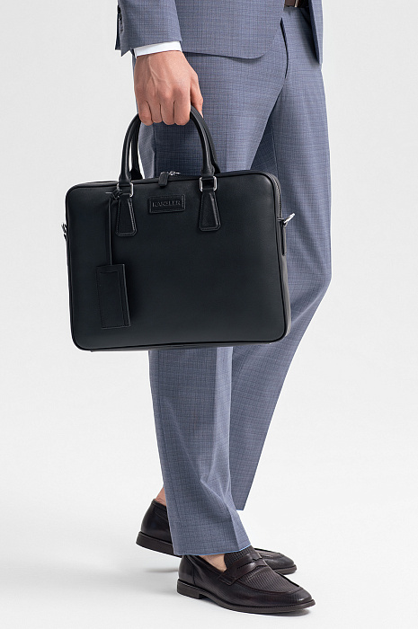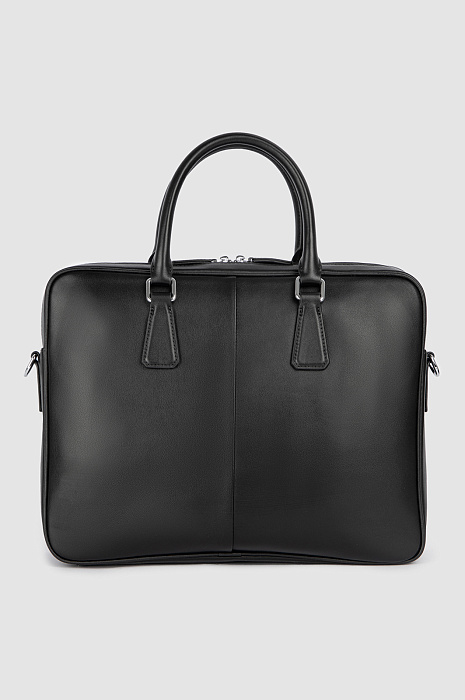Изящный черный портфель KANZLER из гладкой кожи выглядит роскошно и самодостаточно благодаря лаконичному дизайну, аккуратным деталям и фурнитуре из белого металла. Логотип и бирка с тиснением придают портфелю индивидуальность. Внутри — вместительное основное отделение для ноутбука и отделение для документов. Портфель можно держать за ручки, а в поездках и путешествиях — носить на широком плечевом ремне из прочного текстиля. Матовая гладкая натуральная кожа эффектно смотрится и хорошо выдерживает испытание временем.