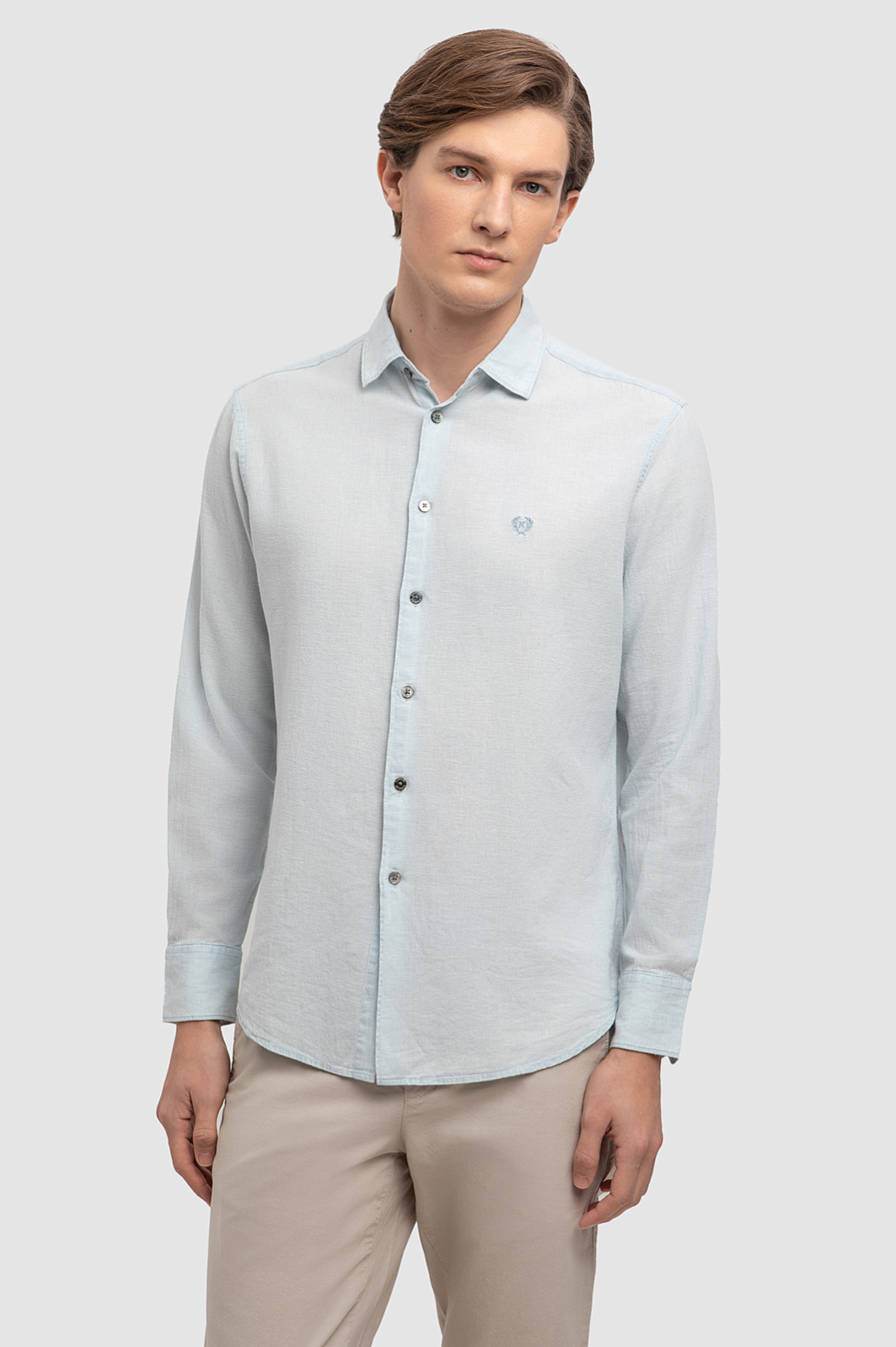 Рубашка изо льна и хлопка, цвет голубой, цена 5 990 руб., код 266934 - купить в Новосибирске в интернет-магазине KANZLER