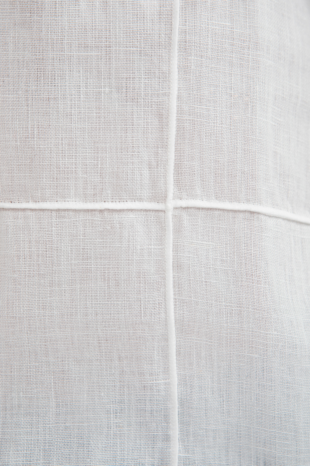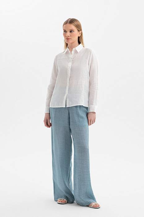 Белая рубашка KANZLER из натурального льна — воплощение элегантности и сдержанного шика. Рубашка легко вписывается как в повседневные, так и в более продуманные образы, оставаясь универсальной вещью для тёплых дней. Умеренно свободный лаконичный крой не сковывает движений. Главным декоративным элементом выступает тонкий рельефный шов, который проходит по передней части и спинке рубашки. Пересекаясь, линии образуют строгий геометрический рисунок, добавляя дизайну современную архитектурную чёткость. Дышащая льняная ткань хорошо пропускает воздух и дарит коже ощущение прохлады, обеспечивая комфорт даже в тёплую погоду. Материал отличается характерной природной фактурой, которая придаёт модели благородство и выразительность, сохраняя её минималистичный характер.