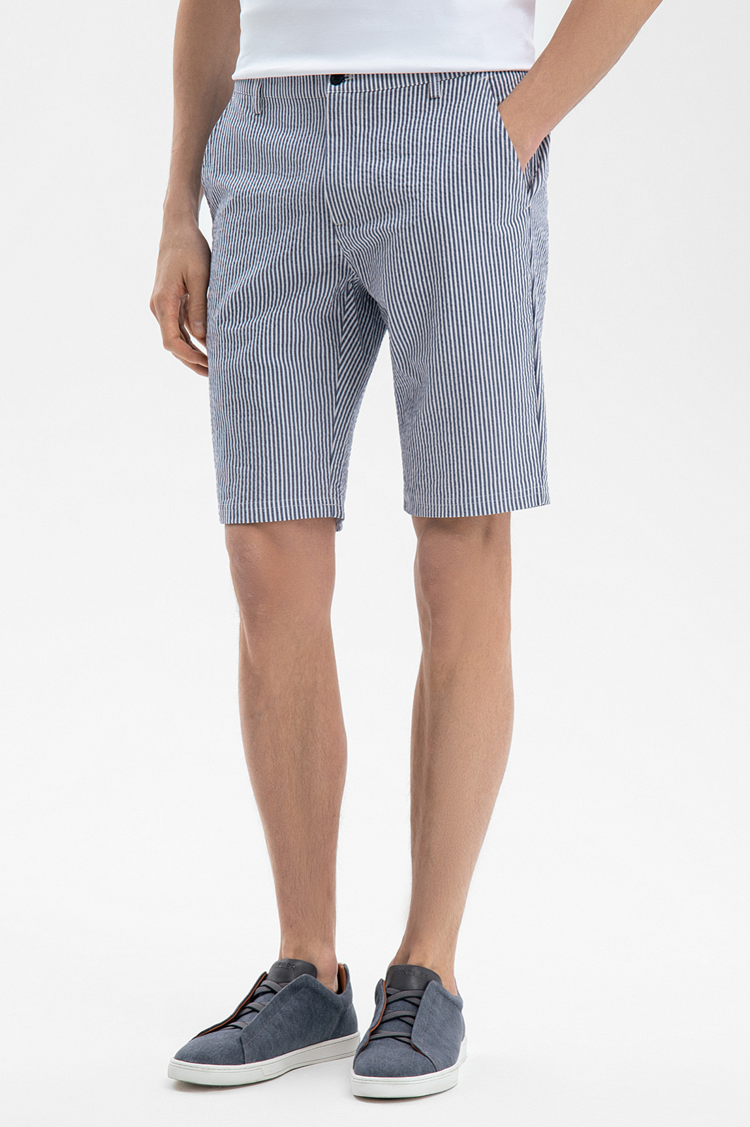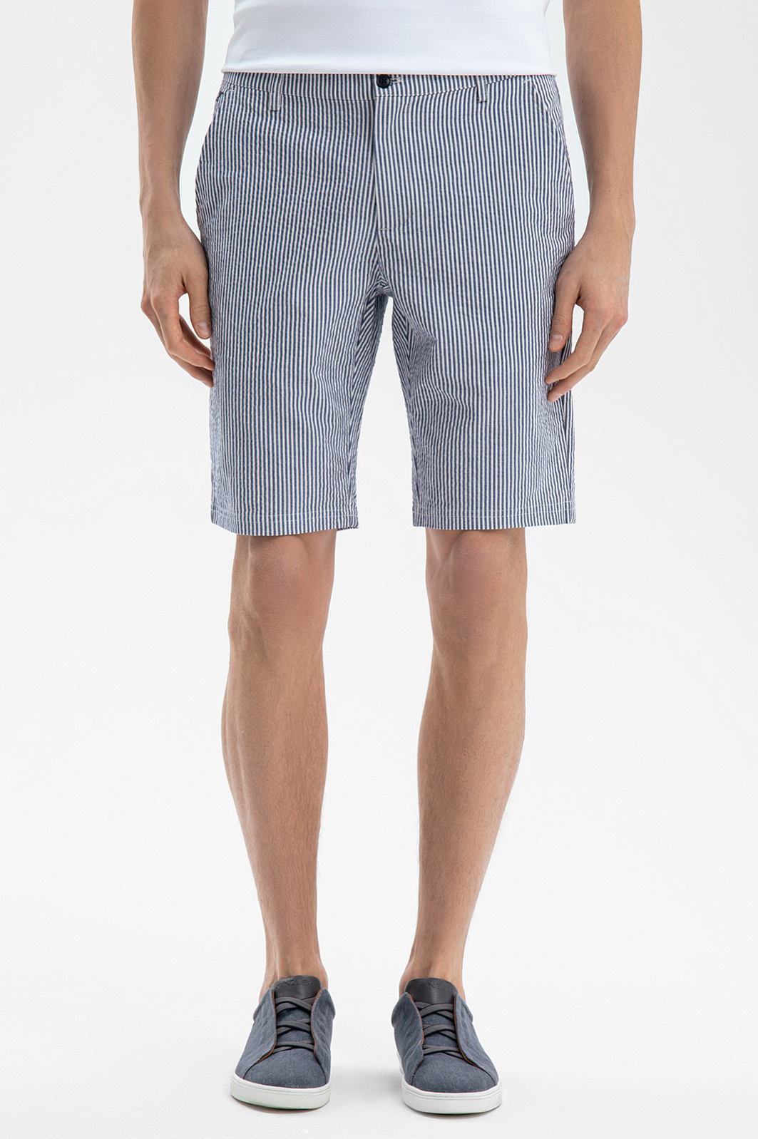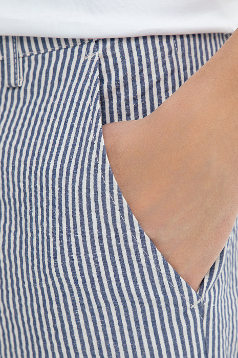 Бермуды из хлопка и льна в полоску, цвет синий, цена 8 990 руб., код 269097 - купить в Новосибирске в интернет-магазине KANZLER