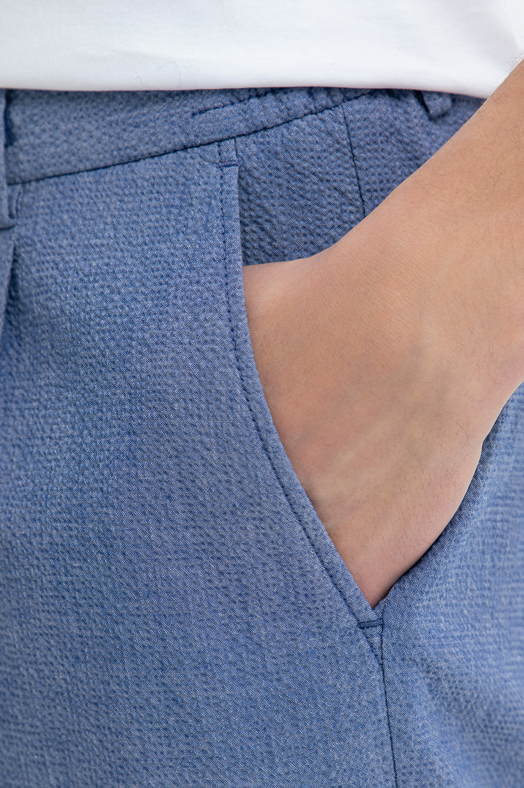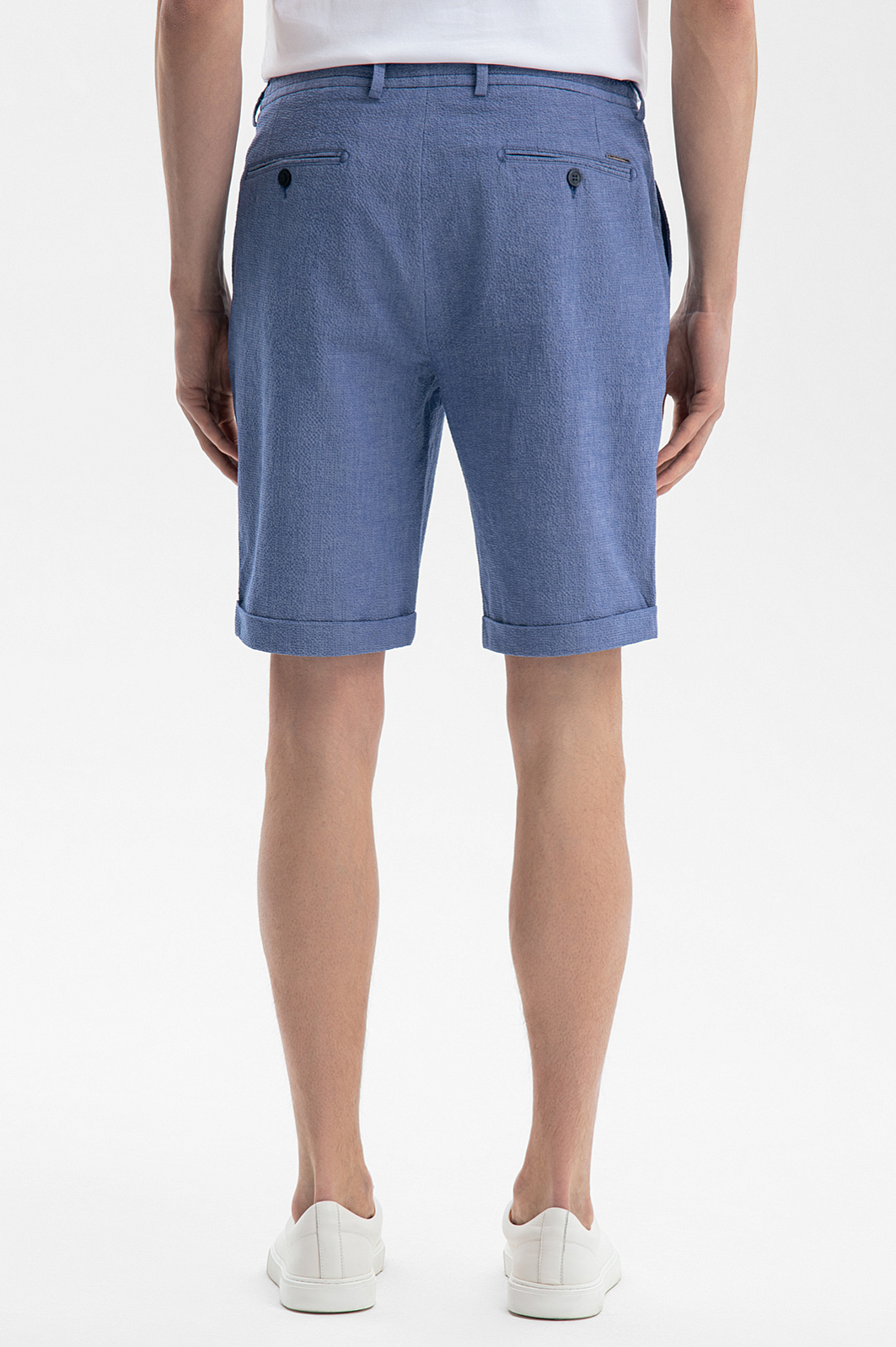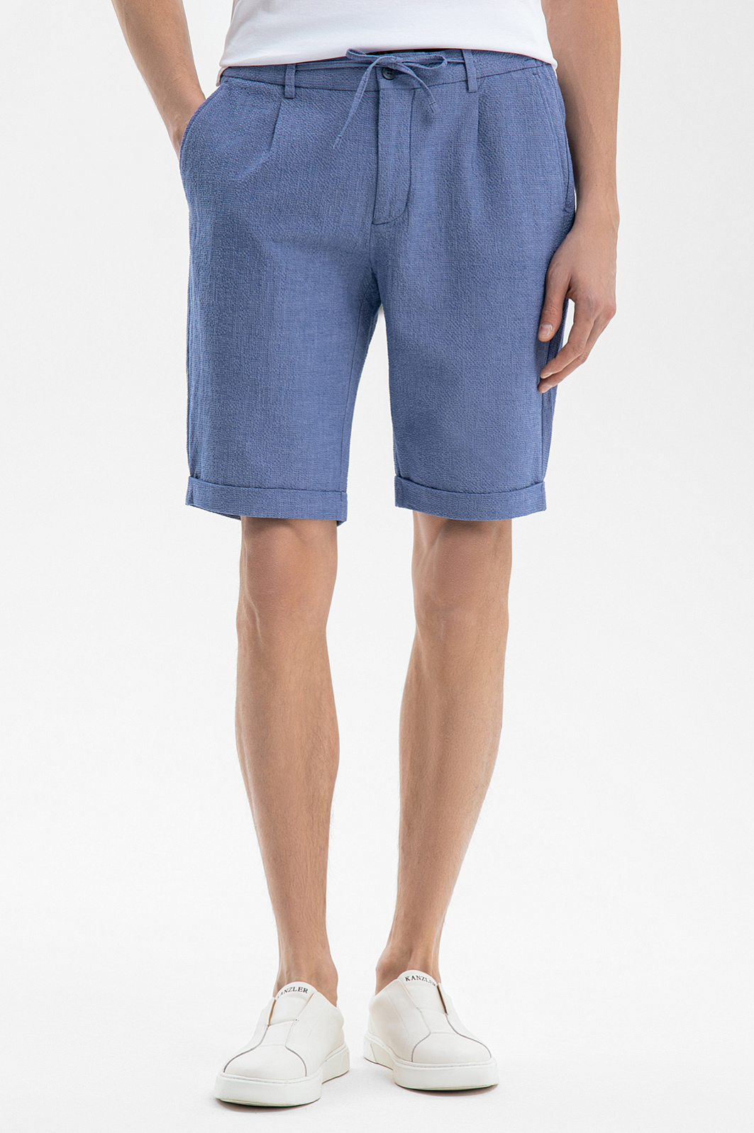 Легкие бермуды KANZLER на кулиске из фактурной хлопковой ткани красивого василькового оттенка из лимитированной коллекции — идеальный вариант для лета в городе или на море. Благодаря расклешенному крою, универсальной средней посадке, мягким защипам и кулиске модель подходит для любого типа фигуры. Ее можно сочетать с футболкой, поло или васильковой сорочкой KANZLER с коротким рукавом. Мягкие натуральные гипоаллергенные волокна хлопка (97%) обеспечивают телу бескомпромиссный комфорт и свежесть. Небольшое добавление эластана (3%) служит для прочности и поддержания аккуратного вида. Параметры модели: рост 189, 91-78-95 Размер на модели: 50