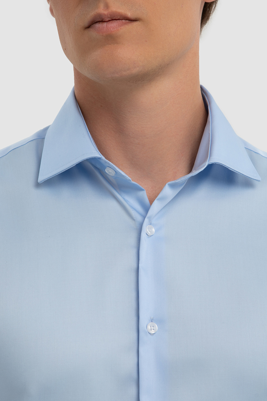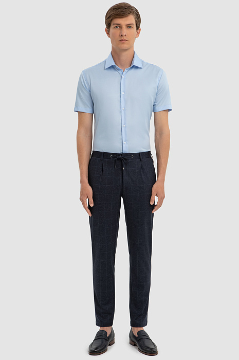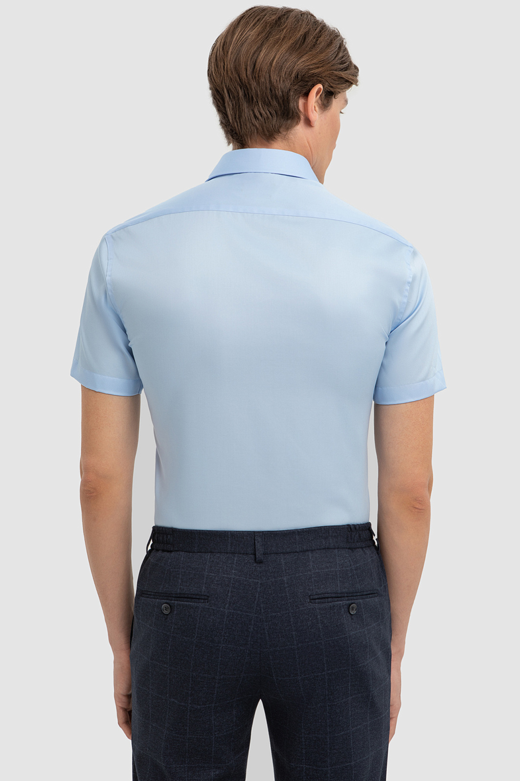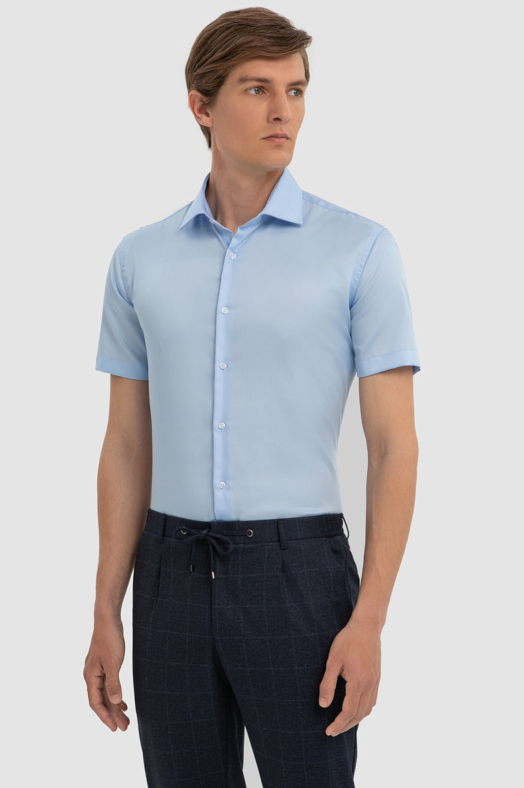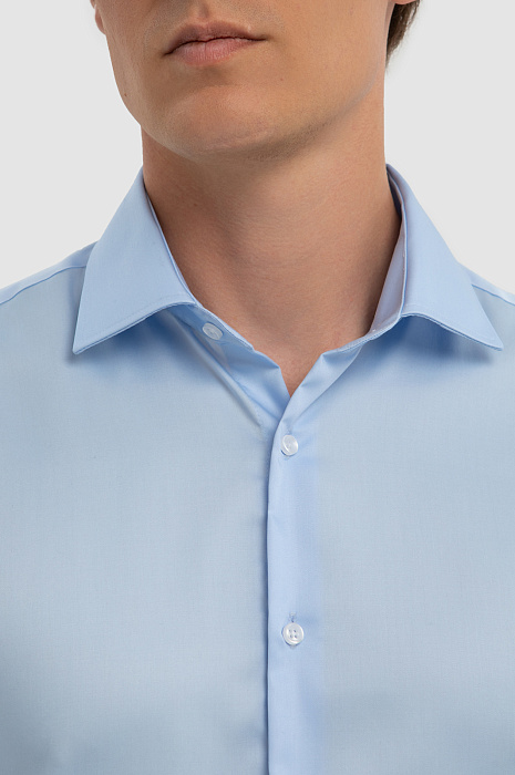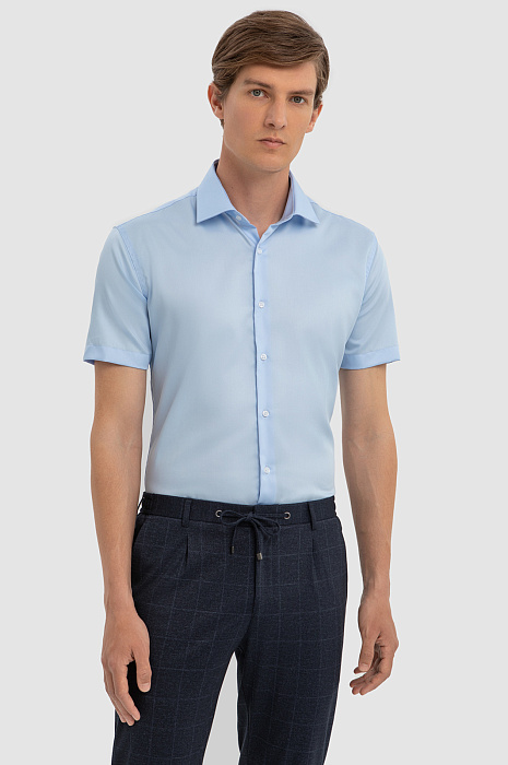 Хлопковая голубая сорочка с коротким рукавом, легкая в уходе, цвет голубой, цена 6 990 руб., код 267498 - купить в Новосибирске в интернет-магазине KANZLER