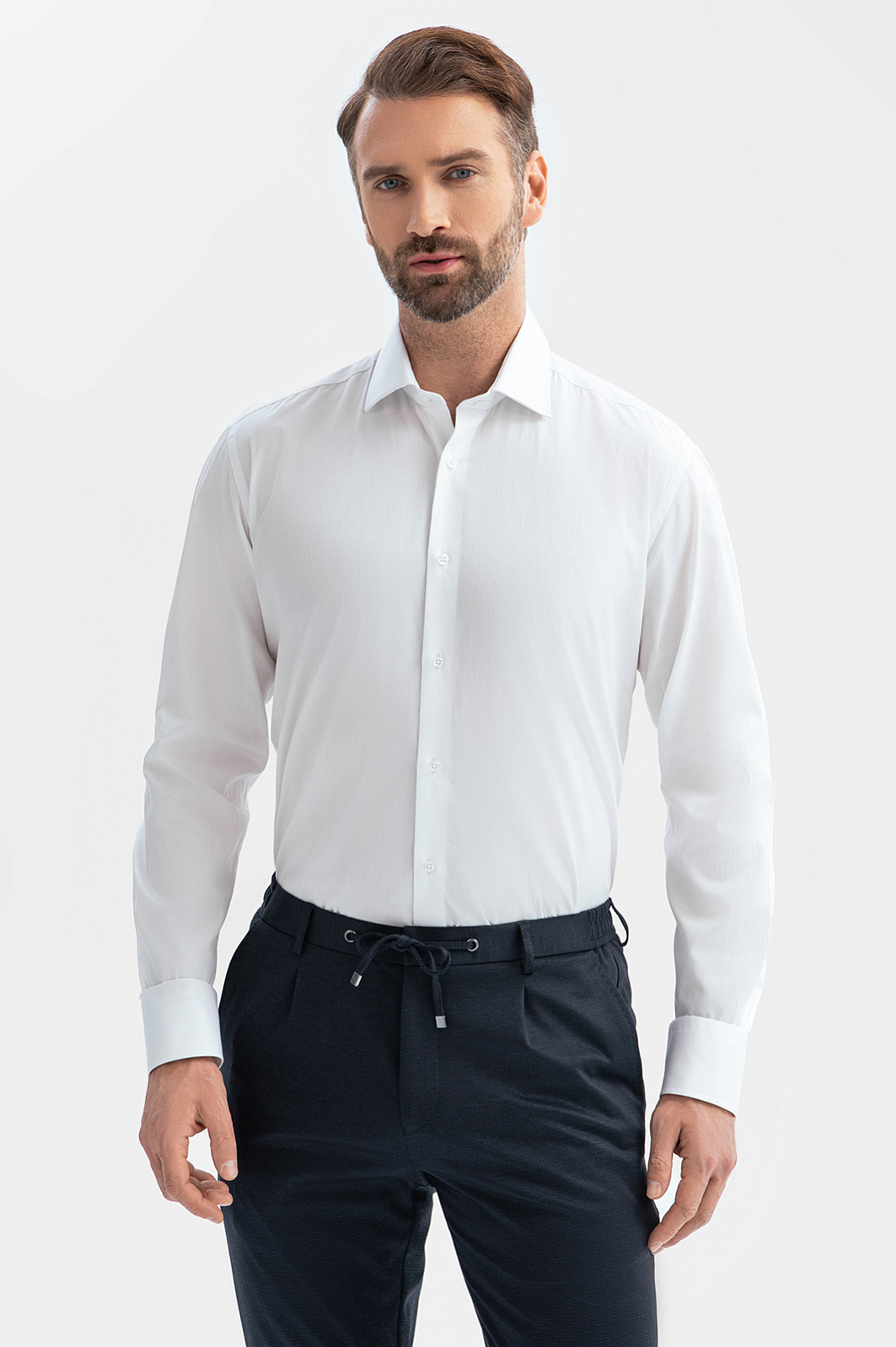 Белая сорочка KANZLER из хлопка с защитой от пятен позволит с достоинством принять все вызовы дня. Классическая базовая вещь уместна в абсолютном большинстве сочетаний и случаев — торжественных, деловых и повседневных. Облегающий крой подчеркивает достоинства мужественной фигуры. Легкая дышащая ткань из 100-процентного хлопка обеспечивает приятные тактильные ощущения и комфорт в течение всего дня. Натуральный материал выглядит всегда аккуратно. Секрет его безупречности — в специальной обработке, которая наделяет ткань дополнительной суперсилой — устойчивостью к загрязнениям. Параметры модели: рост 189, 102-80-99 Размер на модели: 40