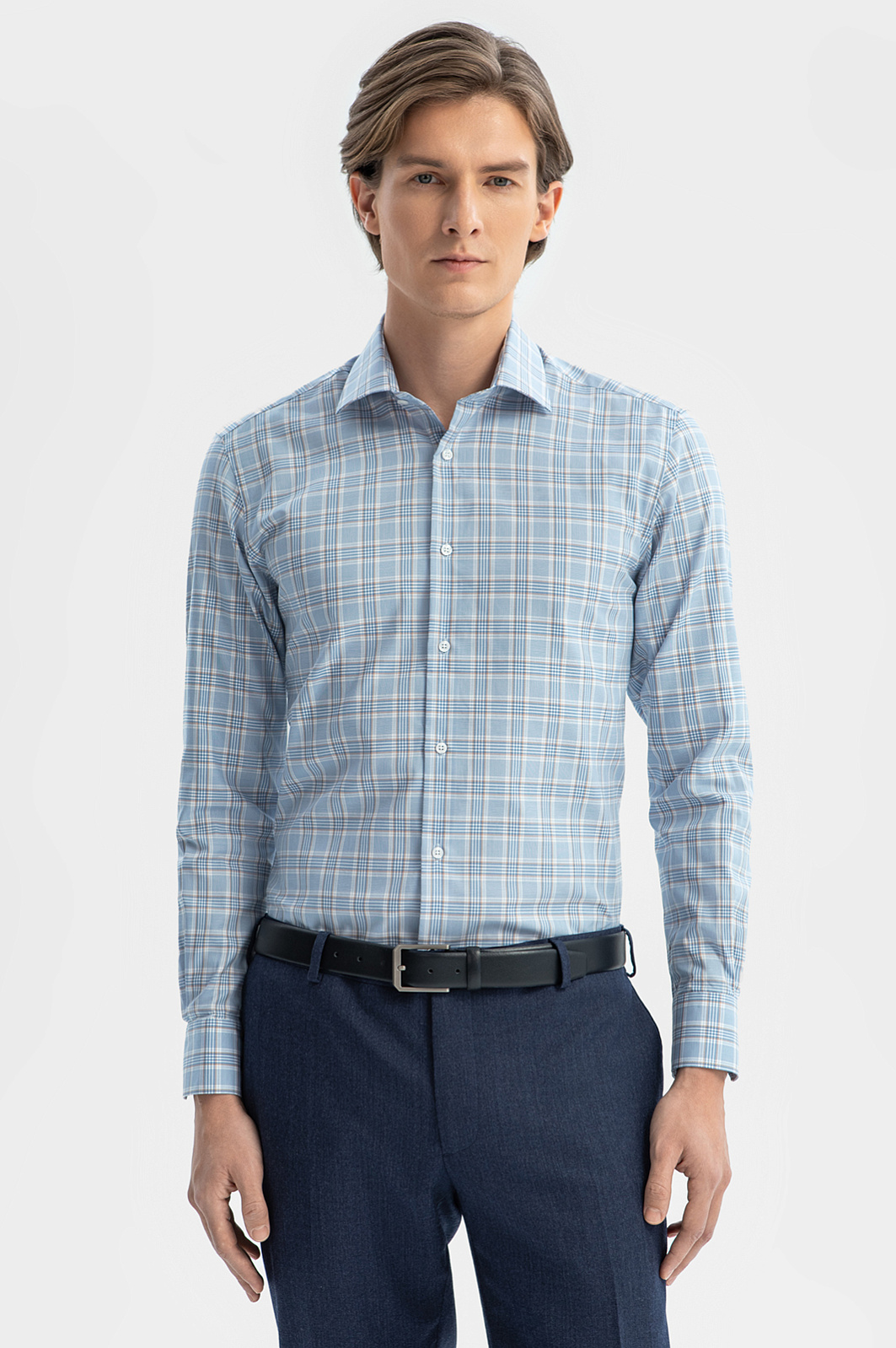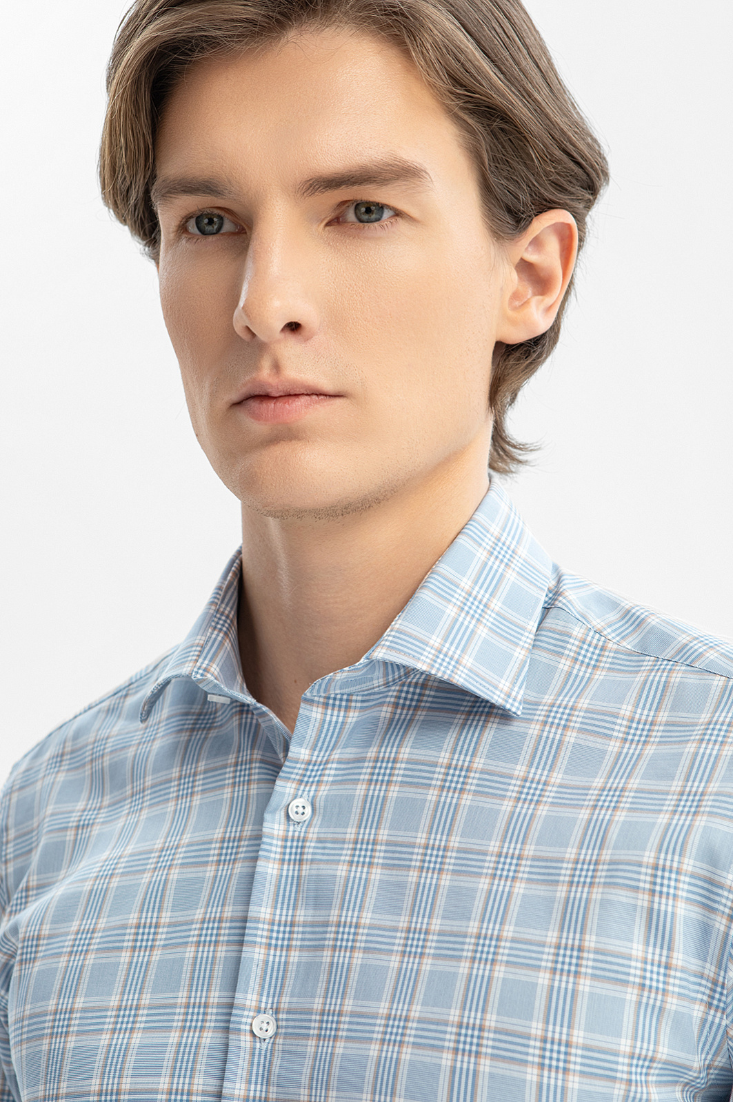 Сорочка из хлопка в клетку, цвет голубой, цена 5 990 руб., код 269310 - купить в Новосибирске в интернет-магазине KANZLER