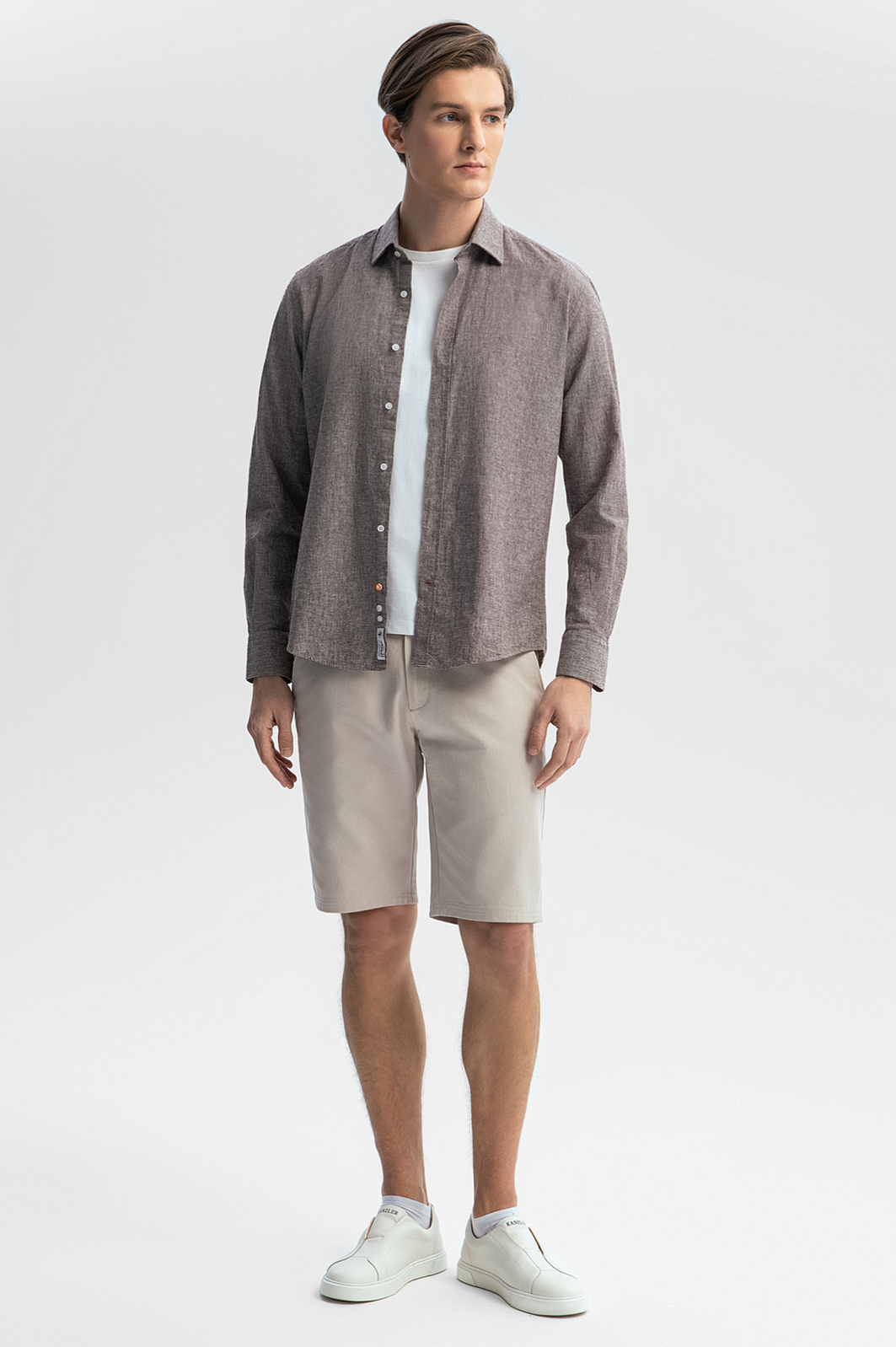 Стильная сорочка KANZLER изо льна и хлопка сшита из роскошной ткани Getzner (Австрия). Полотняное переплетение материала создает красивый меланжевый эффект. Модель сочетает классический крой и небольшие акцентные детали — фирменная вышивка на груди, выделяющаяся в общем ряду нижняя пуговица. Свободная степень облегания — залог комфорта и хорошей посадки. Сорочку изо льна и хлопка можно носить в любую погоду. Ткань из натуральных гипоаллергенных волокон поддерживает оптимальную для тела температуру. Лен создает ощущение прохлады в жаркий день. Хлопок обеспечивает легкость и воздухопроницаемость ткани. Параметры модели: рост 191, 97-77-99 Размер на модели: 40