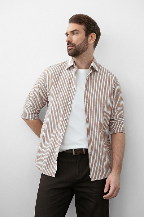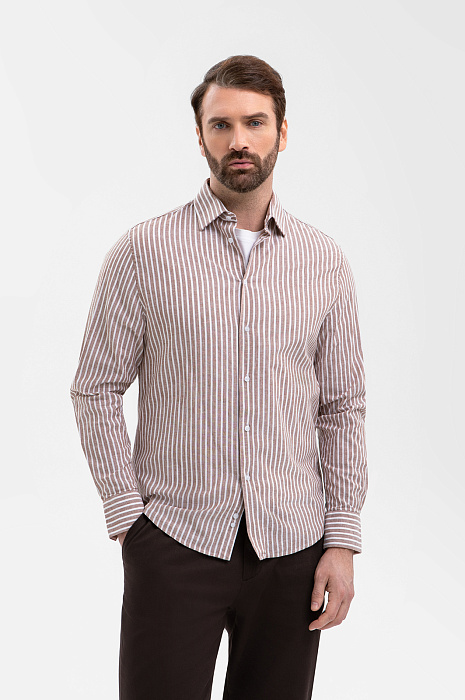 Сорочка из хлопка и льна, цвет коричневый, цена 8 990 руб., код 270877 - купить в Новосибирске в интернет-магазине KANZLER