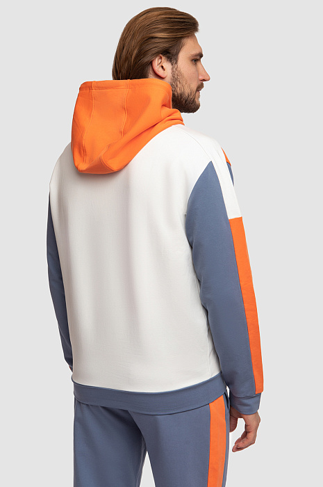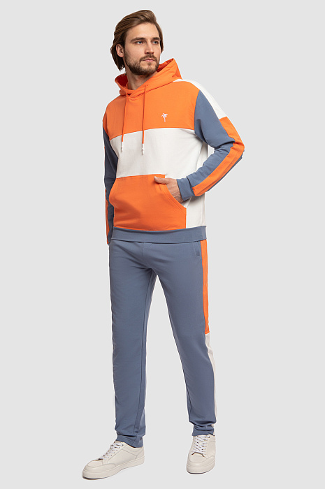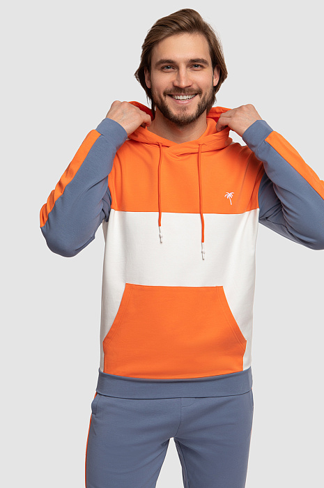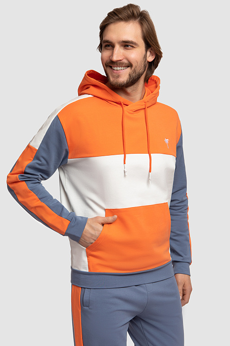 Яркую толстовку с длинными рукавами и капюшоном выполнили в трендовой технике color bloсking. Микс форм и цветов - один сплошной акцент, который придает образу актуальность, стиль и задор. Толстовка KANZLER из мягкого смесового материала (95% хлопок, 5% спандекс) ярко заявляет о вашей индивидуальности, обеспечивая комфорт в повседневной носке, при активных прогулках или поездках загород. Изделие выполнили из мягкого хлопкового трикотажа, который хорошо пропускает воздух, дарит свободу движений и обеспечивает прекрасную терморегуляцию. Дизайнеры завершили спортивную стилистику изделия накладным карманом для важных мелочей и объёмным капюшоном для защиты от ветра. Дополнительным декором служит небольшой патч с изображением пальмы, который словно намекает на отпуск и дальние страны. Наши стилисты советуют носить модель в комплекте с трикотажными брюками.