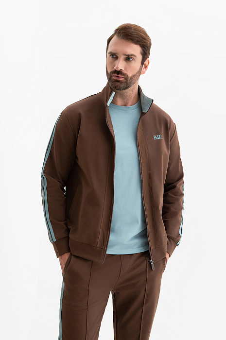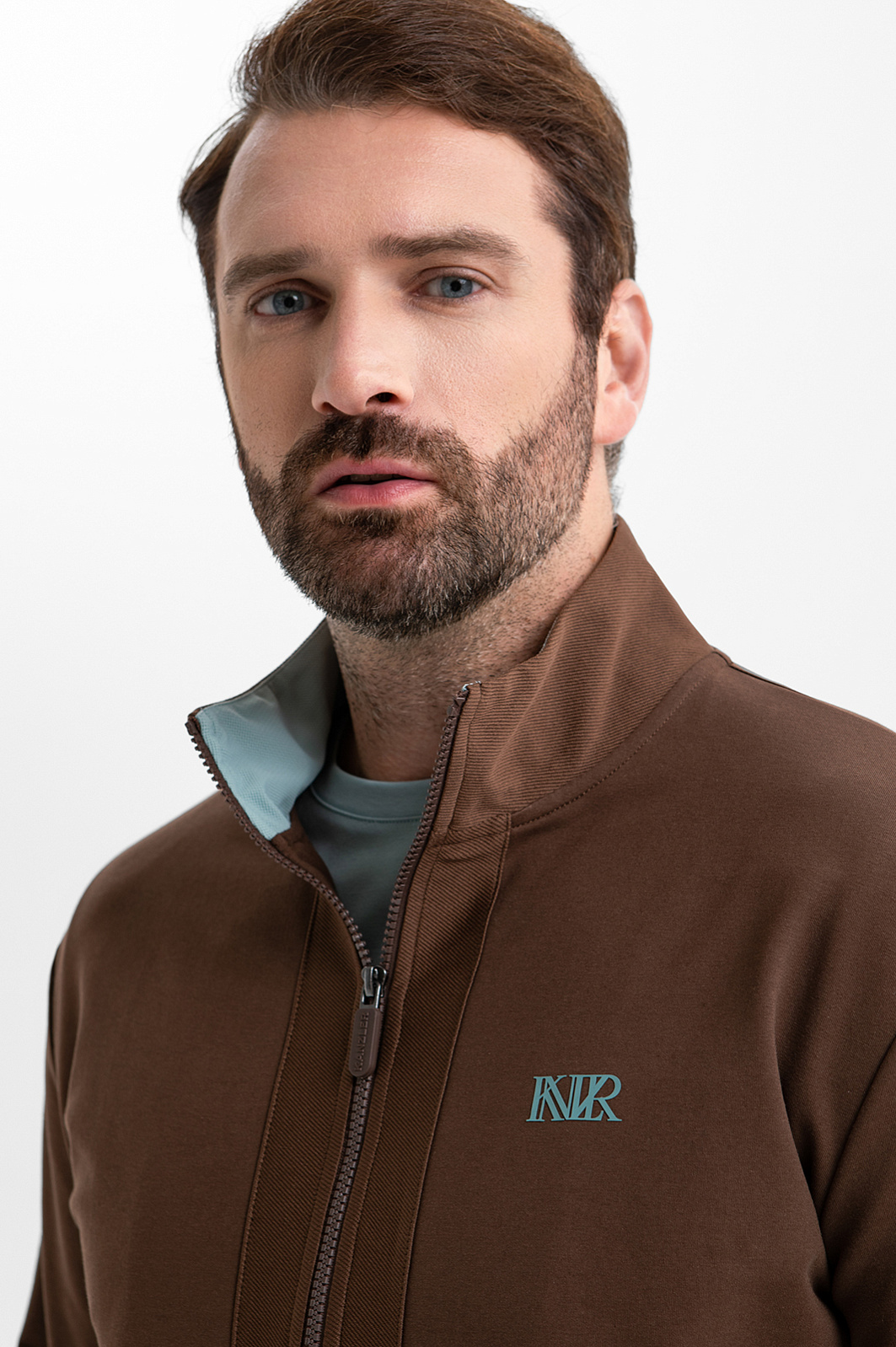 Коричневая толстовка KANZLER из хлопка на молнии с голубыми деталями — это комфортная и стильная модель на каждый день, которая подходит как для активного отдыха, так и для повседневных спортивных образов. Контрастное цветовое решение — теплый коричневый и освежающий голубой — смотрится современно и легко вписывается в городской гардероб. Спортивный крой и эластичный материал не сковывают движений. Мягкий и приятный к телу трикотаж (66% хлопок, 29% полиэстер, 5% спандекс) пропускает воздух, не мнется и умеет адаптироваться к особенностям фигуры. Параметры модели: рост 189, 102-80-99 Размер на модели: 50