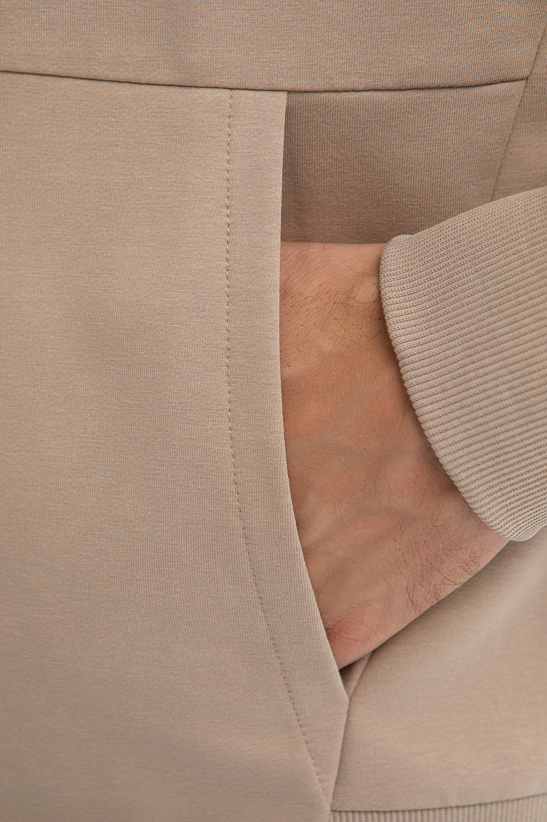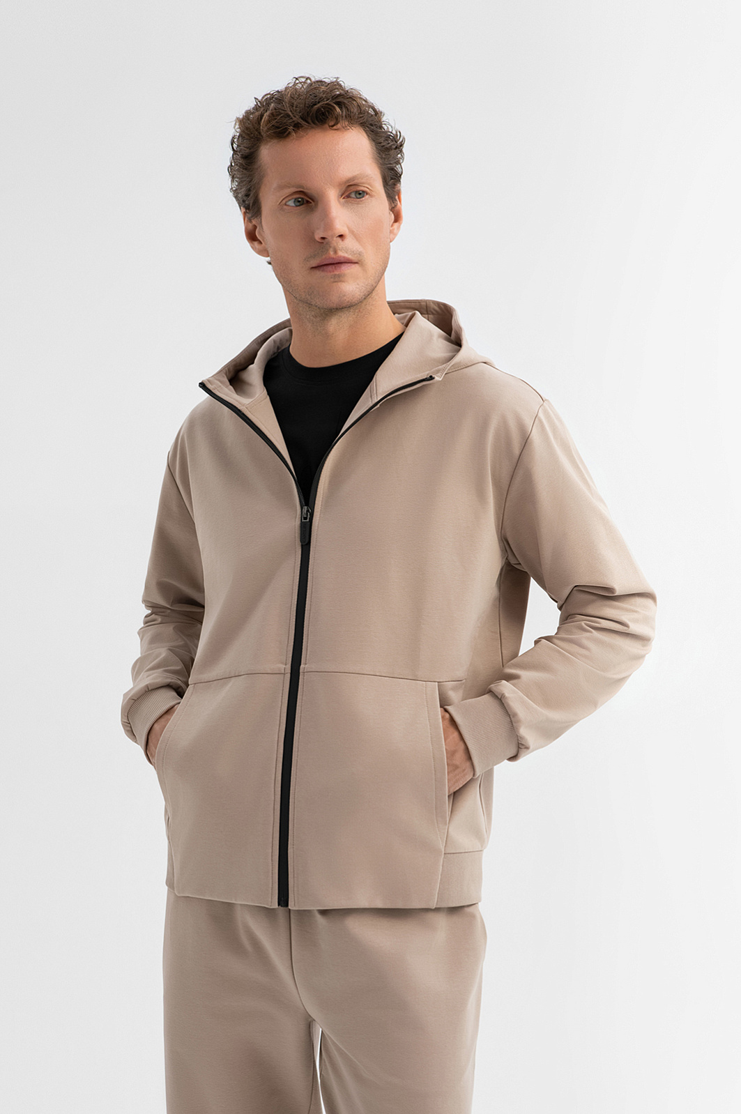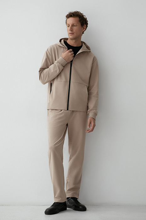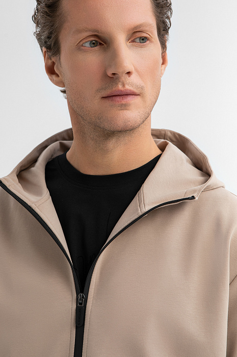 Бежевая толстовка KANZLER с капюшоном из мягкого трикотажа — универсальный элемент гардероба. Модель предназначена для тех, кто ценит продуманный комфорт и современную городскую эстетику. Собираясь на прогулку или в спортзал, толстовку можно надеть с джоггерами. А для создания аутфитов в городском стиле  — c джинсами или под классическое пальто. Контрастная чёрная молния подчеркивает минималистичность дизайна, а крупные карманы — функциональность и расслабленный характер. Модель выполнена из приятного для тела трикотажа (66% хлопка, 29% полиэстера и 5% спандекса) — мягкого, дышащего и эластичного. Параметры модели: рост 188, 97-82-92 Размер на модели: M