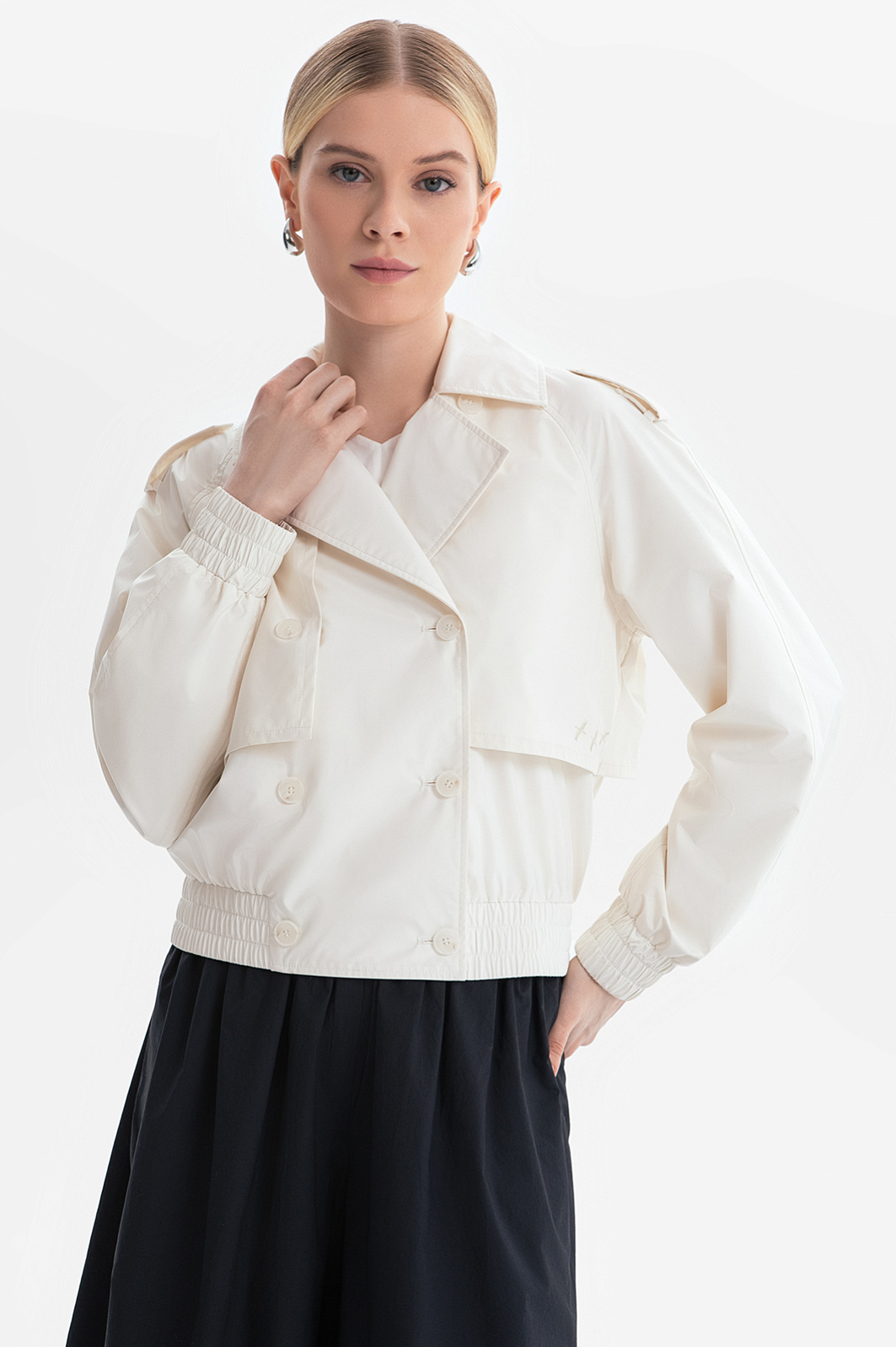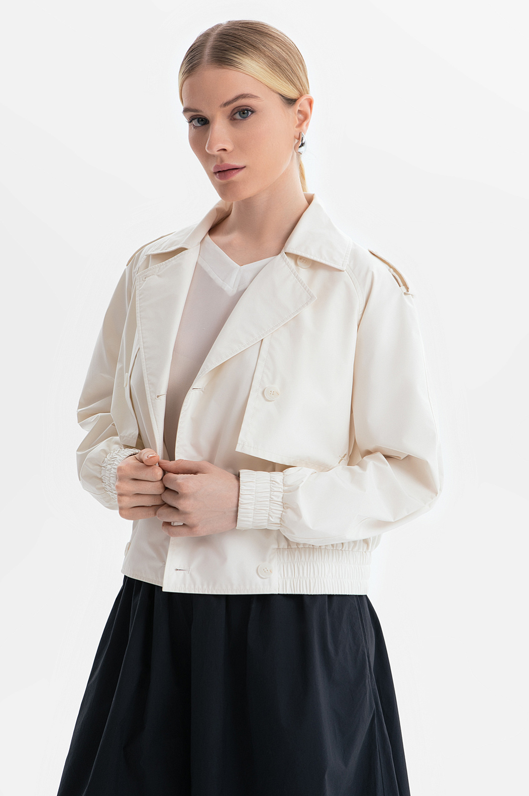 Куртка-тренч короткая, цвет молочный, цена 10 990 руб. - купить в интернет-магазине KANZLER