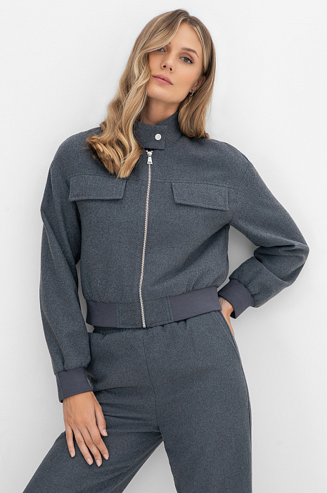 Жакет-бомбер из смесовой шерсти, цвет антрацит, цена 10 990 руб. - купить в интернет-магазине KANZLER